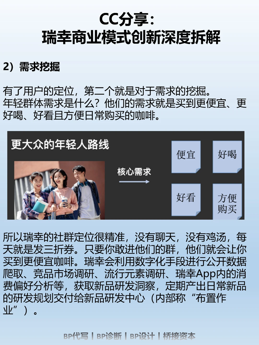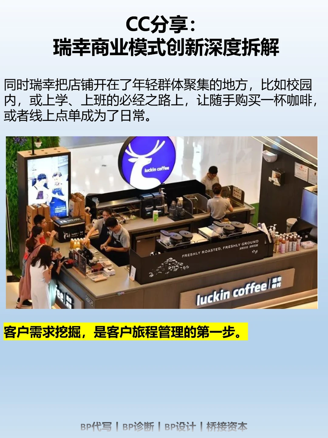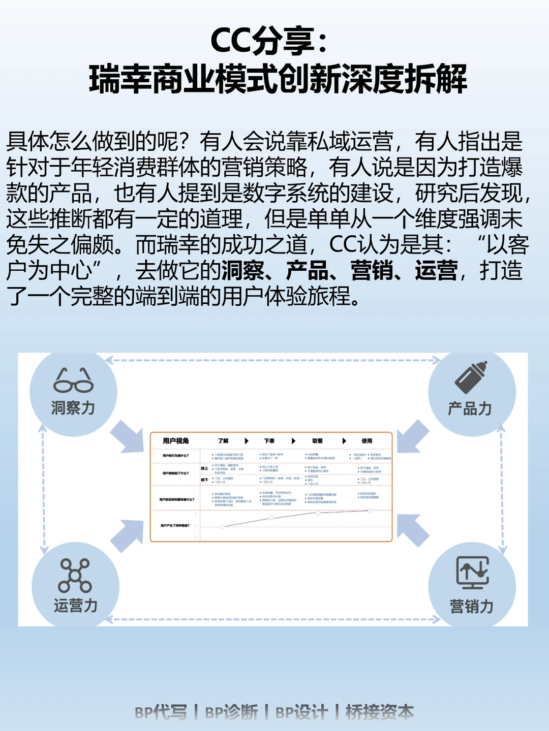 有人会说靠私域运营,有人指出是针对于年轻消费群体的营销策略,有人说是因为打造爆款的产品,也有人提到是数字系统的建设,研究后发现,这些推断都有一定的道理,但是单单从一个维度强调未免失之偏颇。而瑞幸的成功之道,CC认为是其:“以客户为中心”,去做它的洞察、产品、营销、运营,打造了一个完整的端到端的用户体验旅程。 具体分析,详见图文