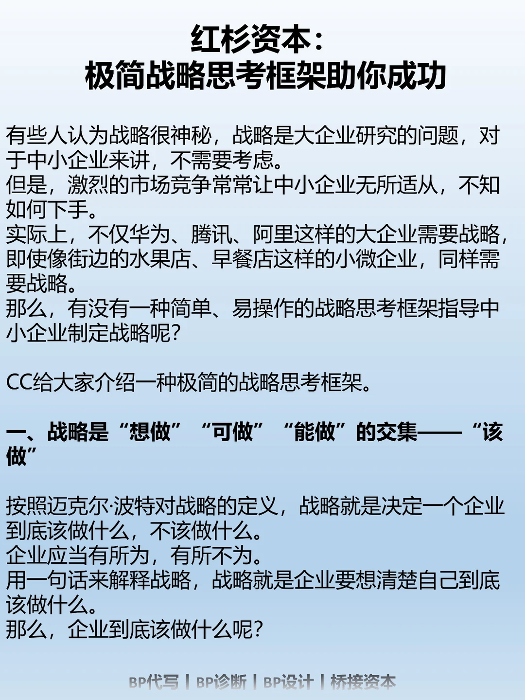 那么,有没有一种简单、易操作的战略思考框架指导中小企业制定战略呢?