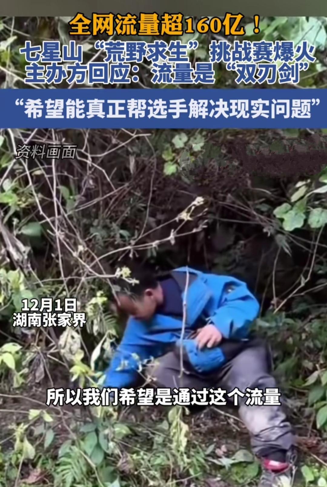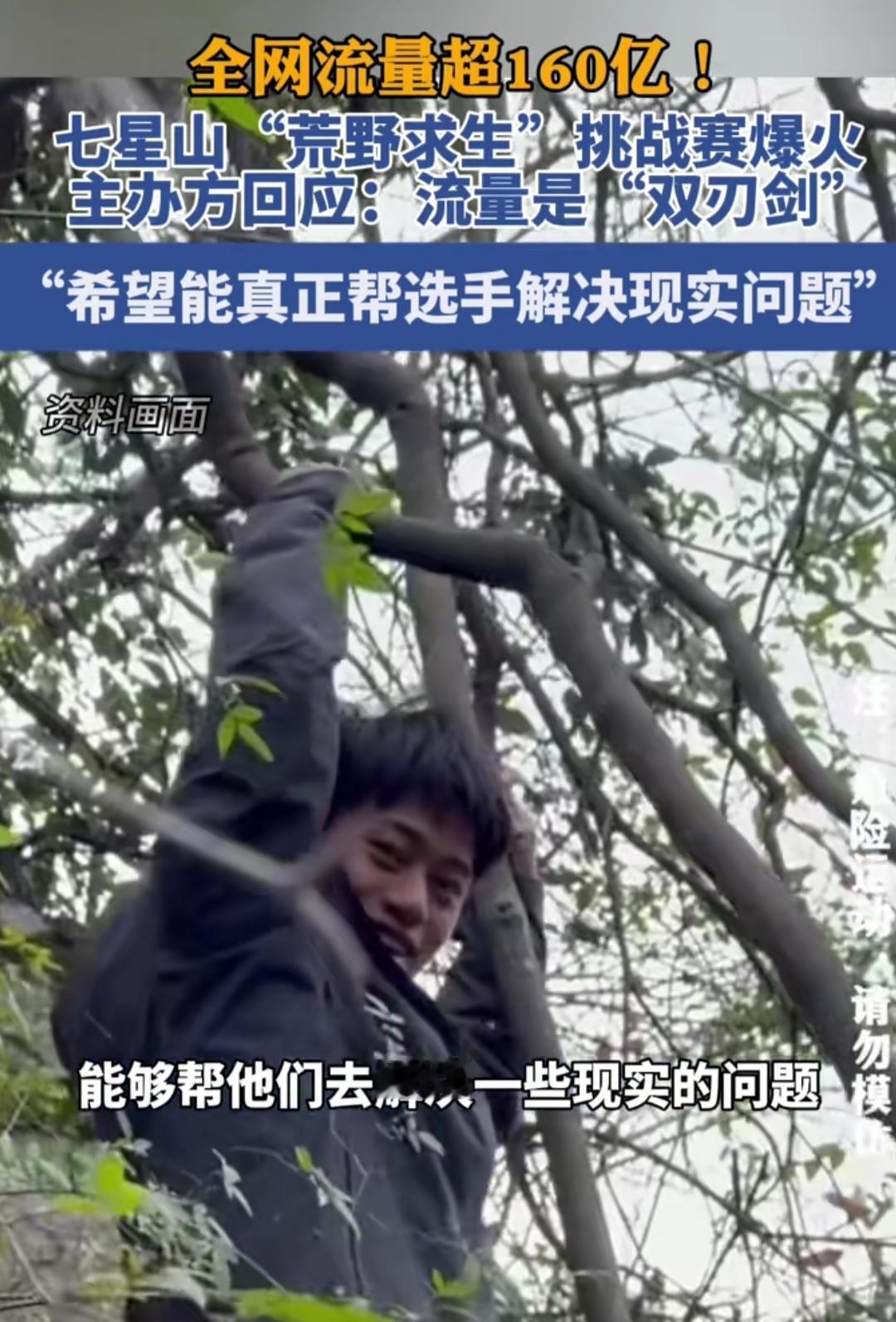 你敢信吗?七星山荒野求生赛全网流量直接被干到160亿了!可主办方却说“流量是把双刃剑”,这话一出口,瞬间让人醒了神。 镜头里选手们钻林子、爬树求生,看得人热血沸腾,可流量涌来的同时,选手们的现实困境也跟着暴露了。主办方说“希望用流量帮选手解决实际问题”——这哪是办比赛,分明是想让流量接住那些认真生活的普通人。 现在的流量时代,太多东西火得快凉得也快,赛事爆了、选手红了,可热闹过后呢?要是流量只用来博眼球,那才是真浪费。主办方这声回应,算是摸到了流量的良心:流量该是梯子,不是烟花,能帮普通人解决点真问题,才不算白火一场。 毕竟我们追的不只是荒野里的刺激,更是每个普通人在生活里“求生”的认真。流量能照亮他们的困境,才是真的有意义。