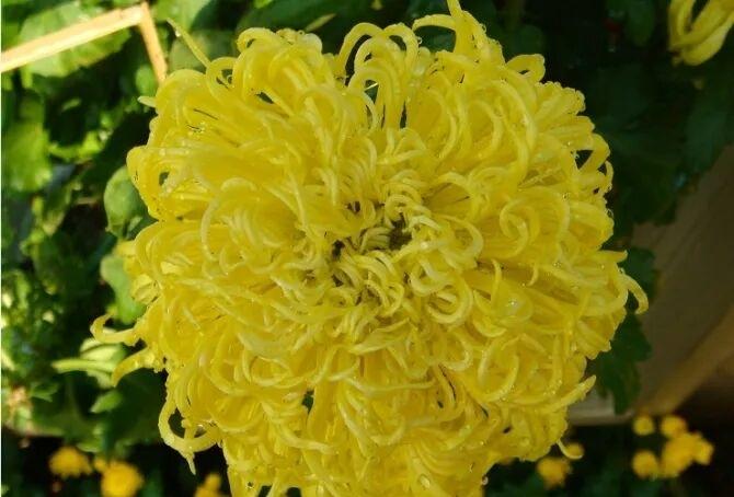金菊赋 晨光里撞见这朵黄菊,像打翻了的阳光揉进了深秋。花瓣是被精心卷过的金丝,层层叠叠旋成金色漩涡,每一缕蜷曲都藏着不肯舒展的傲气。昨夜的雨珠还缀在丝瓣尖端,风过时便簌簌滚落,倒比晨露更像凝结的星光。 周围的雏菊都开得细碎,唯独它堂堂正正立在陶盆中央,绿萼托着金球,连影子都透着股不肯俯就的倔劲。古人说菊有隐者风骨,我看不尽然——这抹明黄哪里是隐逸,分明是把整个秋天的底气都攒在心里,才敢在霜降前绽放得这样理直气壮。 此刻秋阳正好,金瓣流霞,倒让我想起那句"满城尽带黄金甲"。原来真正的气节,从不是藏在东篱下的含蓄,而是明知寒霜将至,偏要活得比阳光更耀眼。