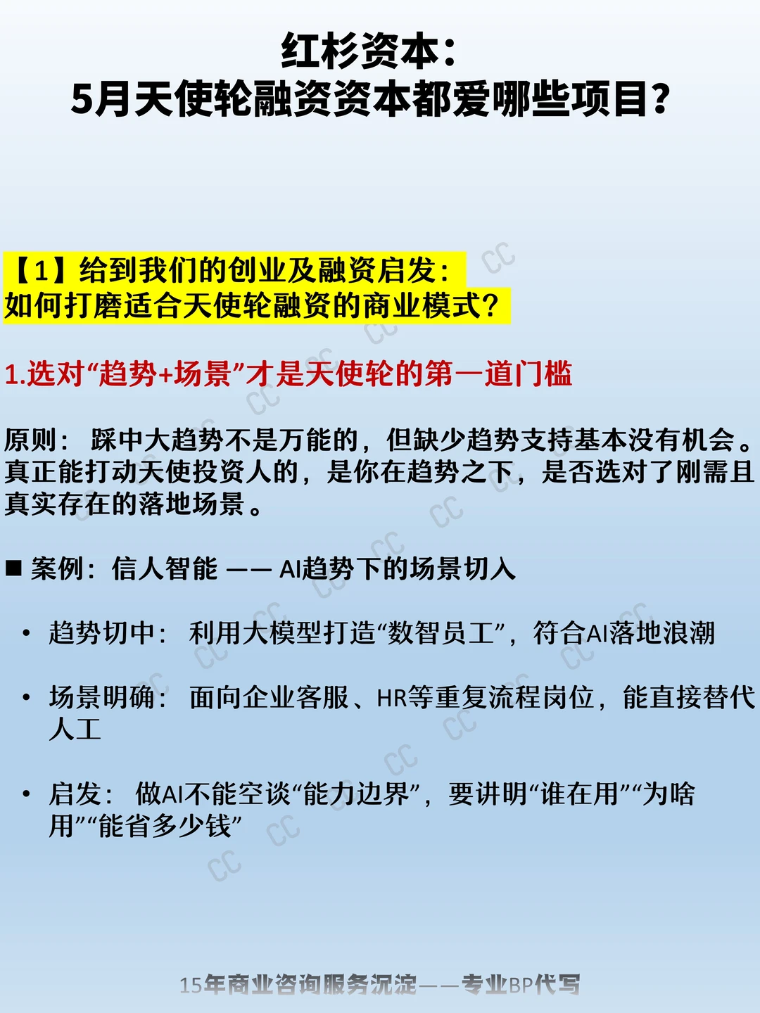 大多数投资人并不期望你在天使轮就具备完美的产品与商业闭环 但他们希望看到你对趋势的理解、路径的判断、痛点的识别能力以及执行落地的框架意识 真正具备这些“认知能力”的创业者,哪怕项目还未成熟,也能打动资本提前下注 创业 商业模式 天使轮融资 天使轮融资商业计划书 天使轮 融资 商业计划书 代写BP 商业计划书代写