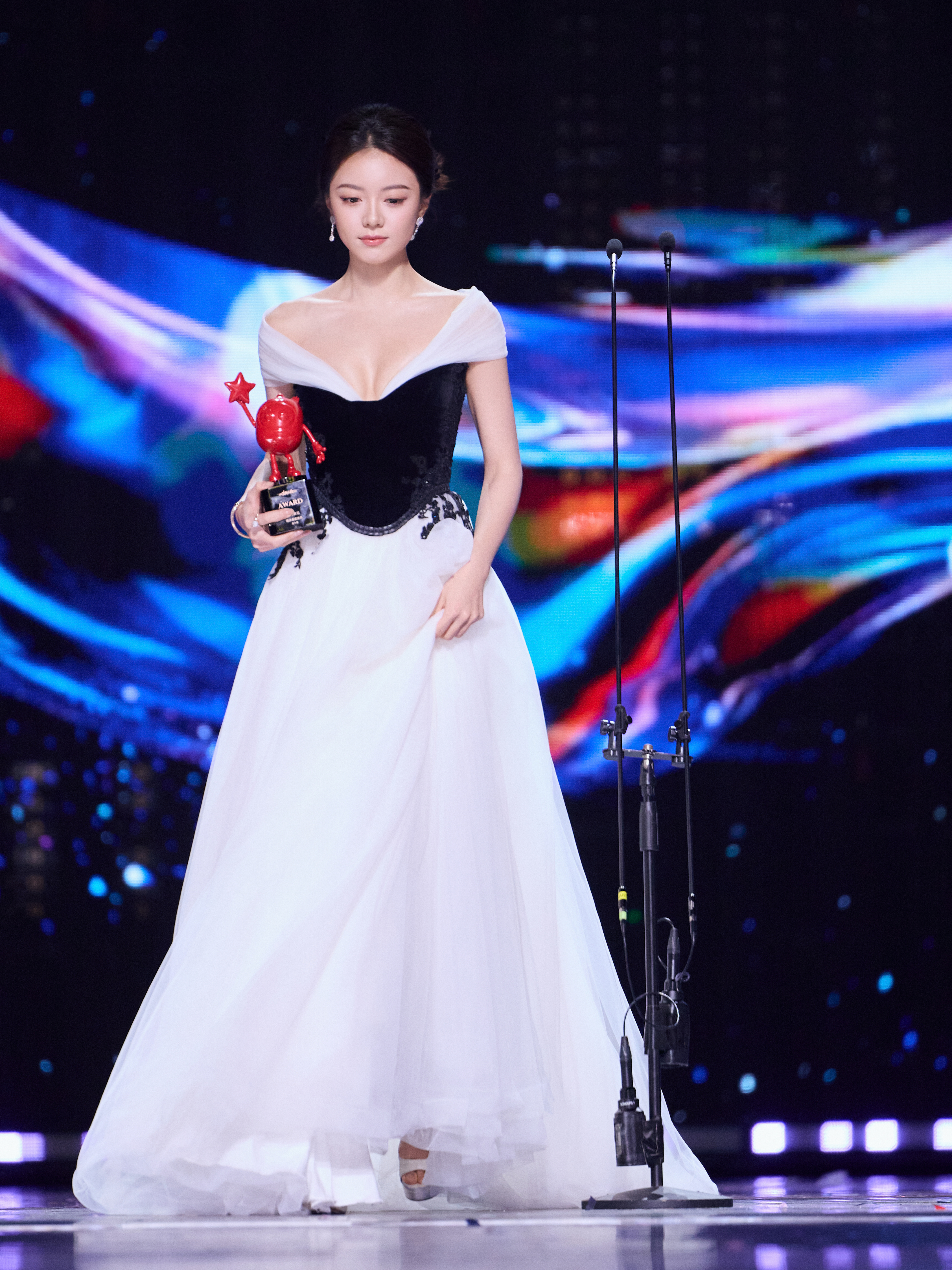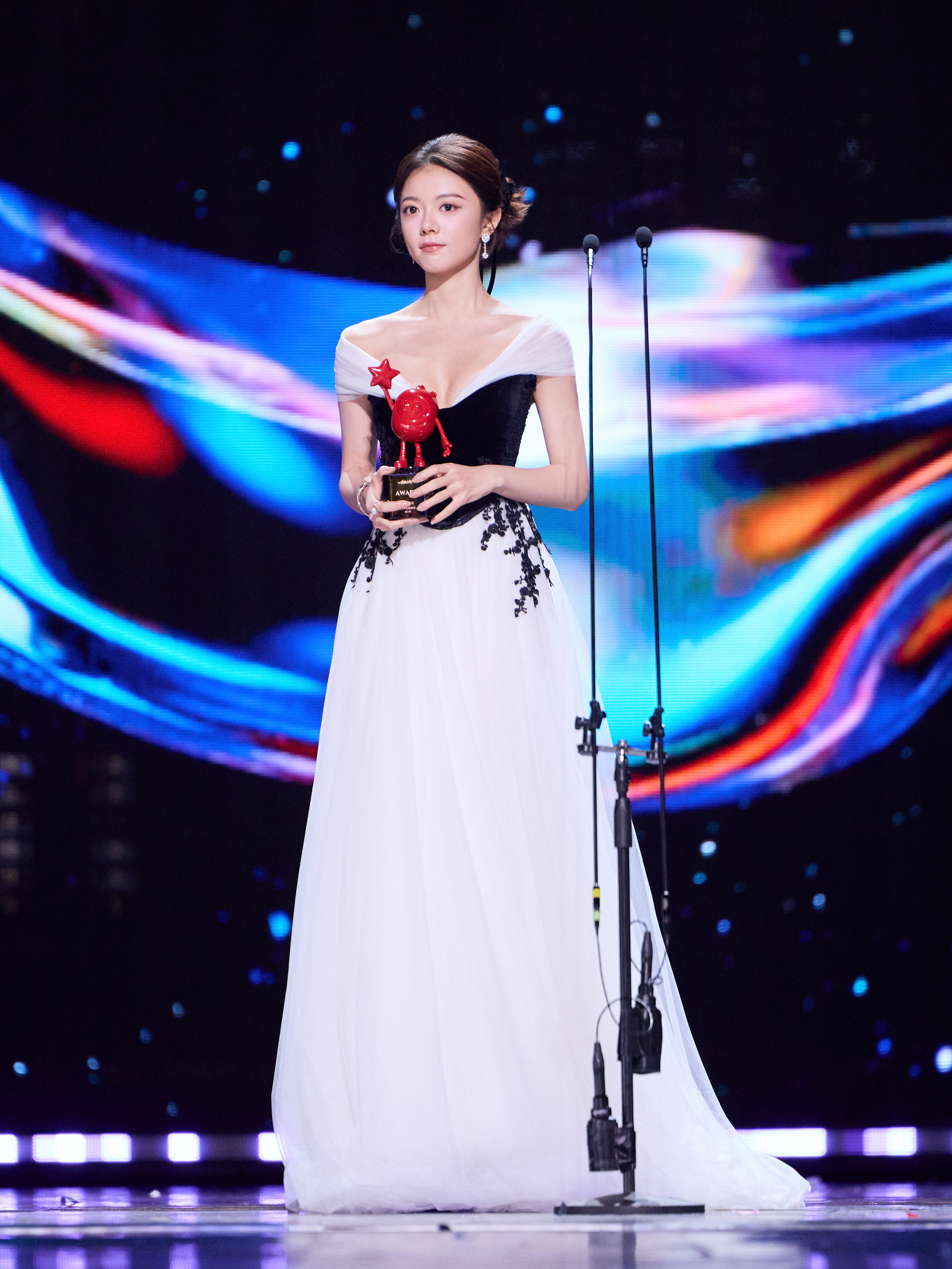 赵今麦出席爱奇艺尖叫之夜活动,身着AADNEVIK 2026春夏系列落肩撞色裙装亮相红毯,佩戴全套Pomellato宝曼兰朵珠宝,完全被美到,麦麦今年又带来一个超漂亮的红毯Look~尖叫之夜红毯|尖叫之夜