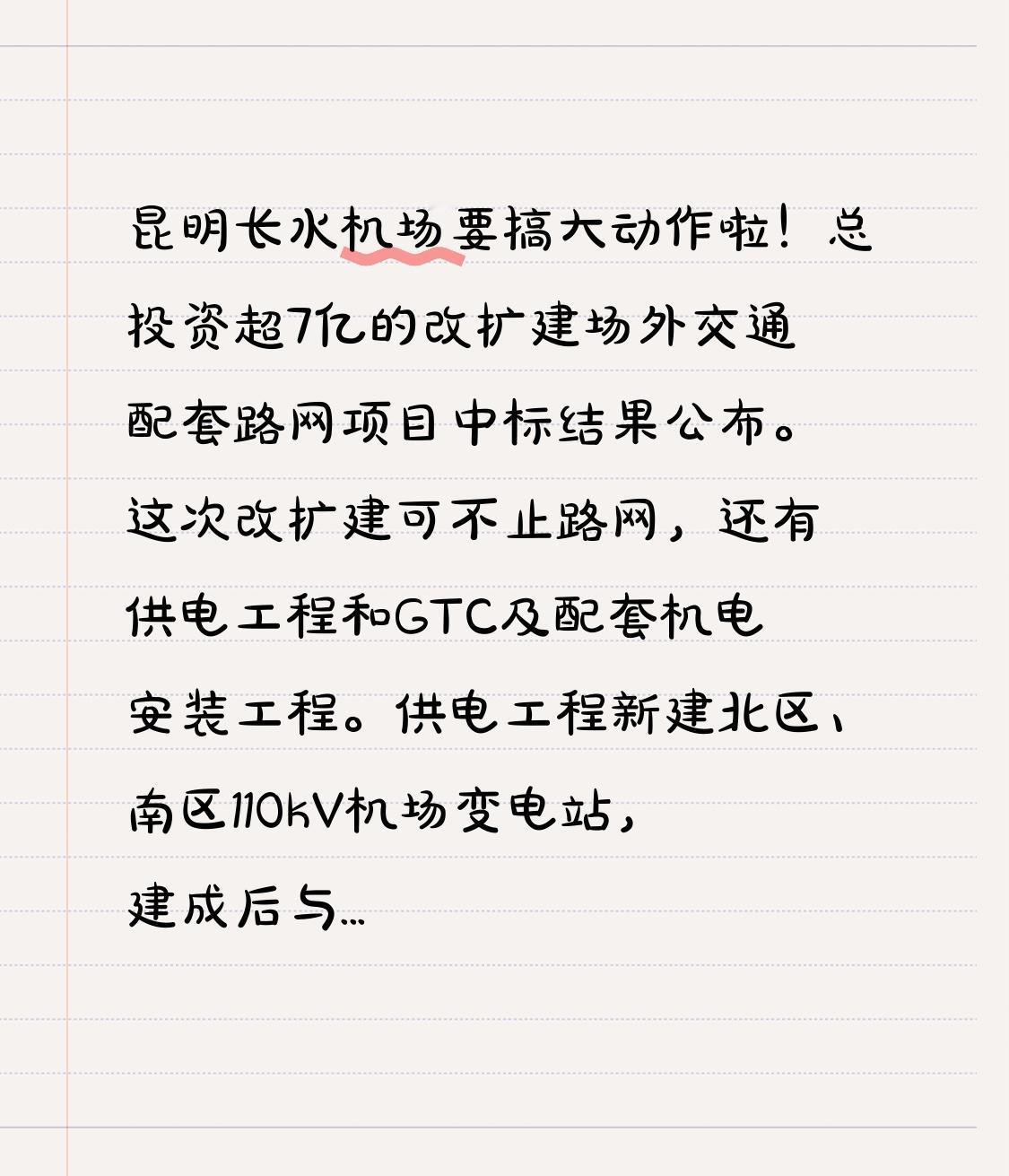 昆明长水机场要搞大动作啦!总投资超7亿的改扩建场外交通配套路网项目中标结果公布。这次改扩建可不止路网,还有供电工程和GTC及配套机电安装工程。 供电工程新建北区、南区110kV机场变电站,建成后与现110kV螺蛳湾变电站共同承担用电需求,投资概算约70000万元,2025年10月开工,2029年6月竣工。GTC及配套机电安装工程要新建综合交通中心、停车楼等,预算41000万元,2025年12月开工,2029年5月竣工。这么大规模的建设,未来长水机场肯定更牛,出行也会更方便! 昆明航站楼 长水t2航站楼 改机场扩建工程 长水机场改扩建 昆明工程招标