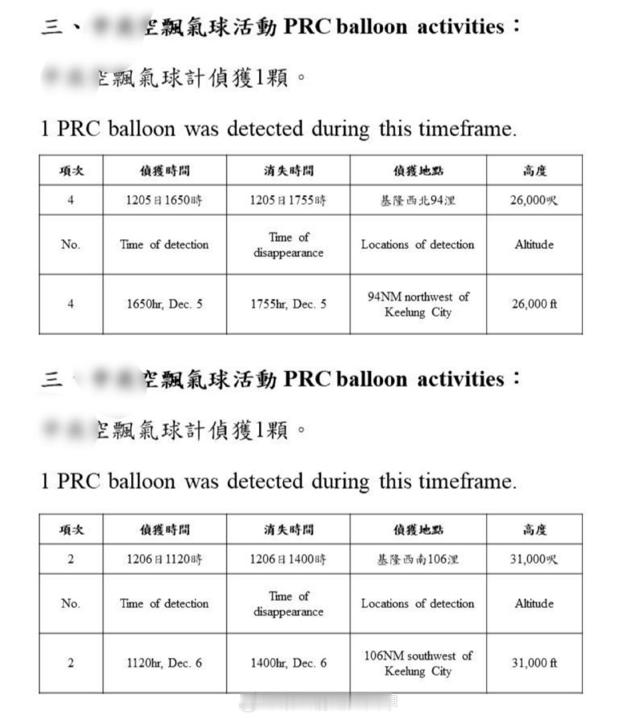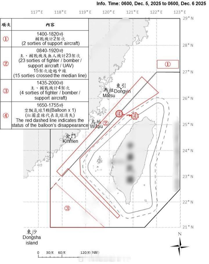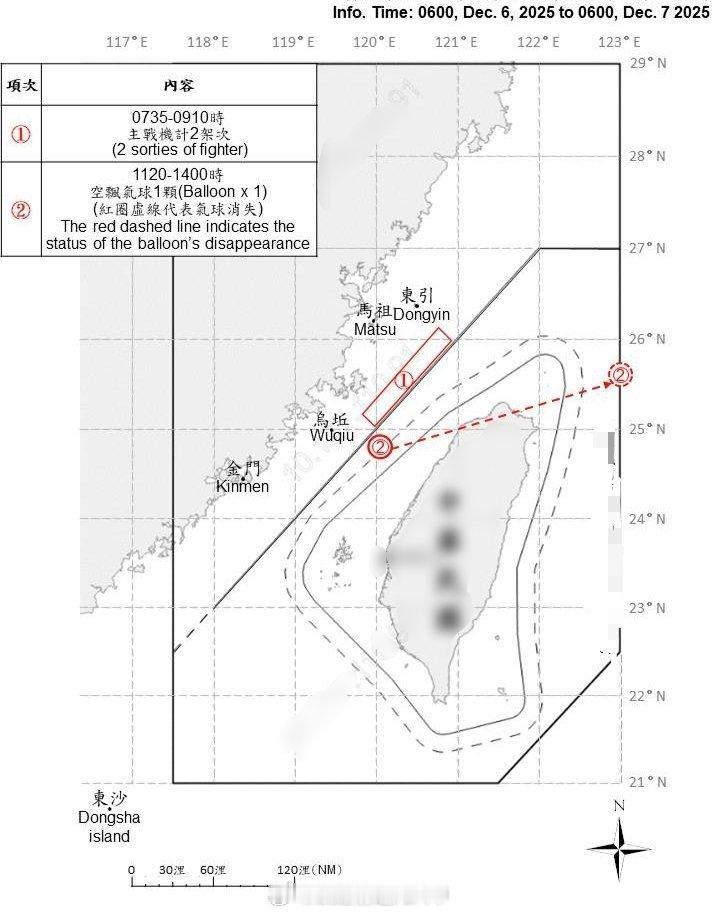 今年的气球季开始了!12月5日、6日即本周五、周六连续两天有大陆方向飞来的空飘气球飞往台北方向 按伪台蛙军通报轨迹,周六的这颗气球(图2)从桃园大潭发电厂附近进入台岛上空,经桃园机场、新北林口区、五股区,从关渡地区进入台北市北投区上空。向北穿越阳明山地后,气球从新北万里的伪台空军防空飞弹指挥部793旅631营1连的爱国者导弹阵地头顶飞过,继续飘往钓鱼岛、琉球群岛方向并飞出伪台所谓“防空识别区”。这个时候也是空飘气球,统战的好时候。