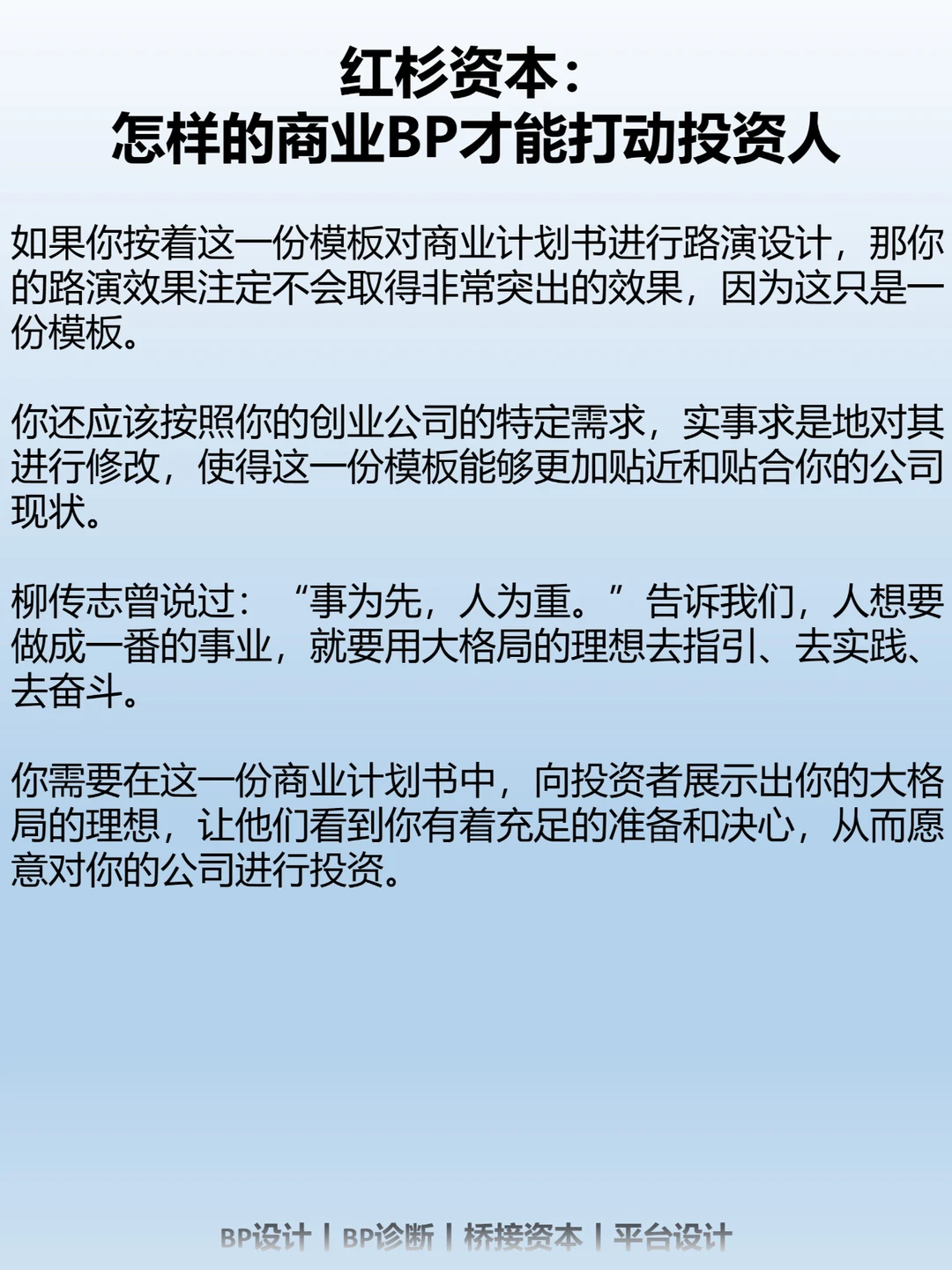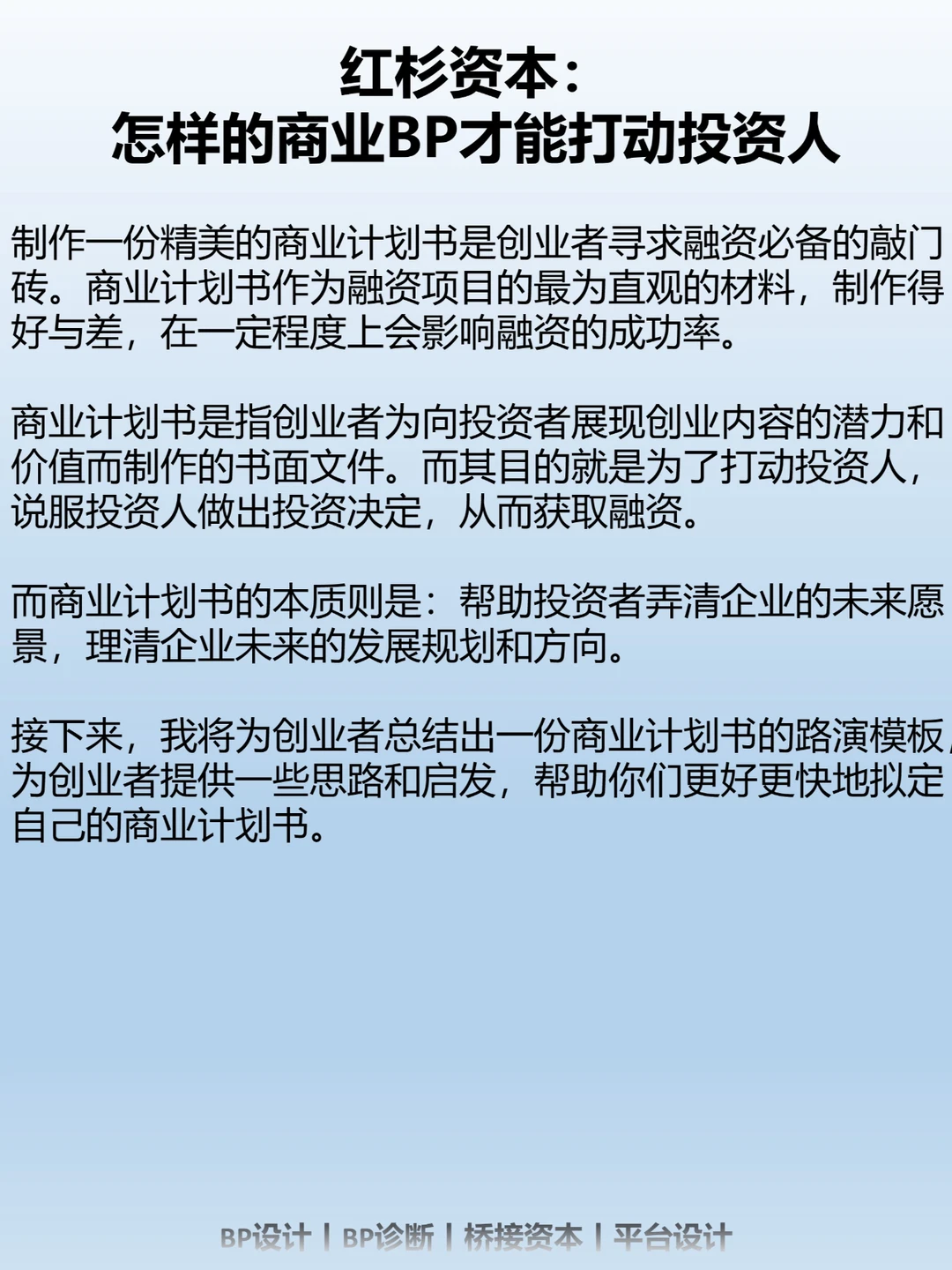 制作一份精美的商业计划书是创业者寻求融资必备的敲门砖。商业计划书作为融资项目的最为直观的材料,制作得好与差,在一定程度上会影响融资的成功率。