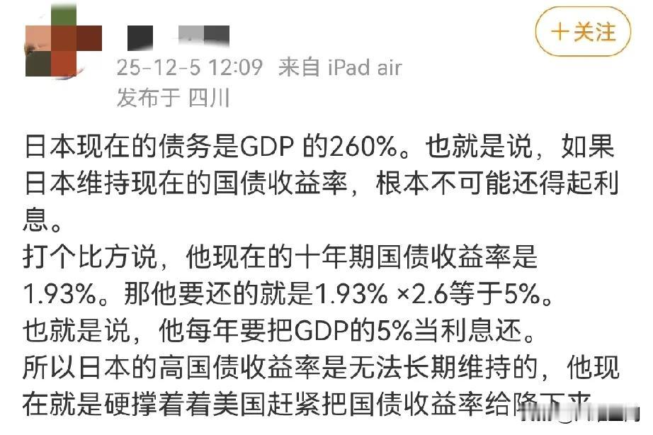 日本加息会让日本连日债的利息都还不是,因为日本的国债是GDP的260%,目前日本国债的收益率是1.93%,也就是一年日本国债的利息就高达5%的GDP,也就是日本光还利息就要用GDP的5%,而且接下来还要加息,也就是不止5%要去还利息,不过日本有一点就是日债绝大部分是日本自己内部持有的,所以如果日债暴雷,也是日本人自己去承受的!日本的经济已经进入一个死胡同,不加息,日元就完蛋了,通货膨胀也会非常夸张,现在日本一斤普通大米是40多块人民币了,加息的话,它的日债会崩,很多僵尸企业会倒闭,经济就会陷入衰退,所以不管日本怎么选择,都是死路一条!