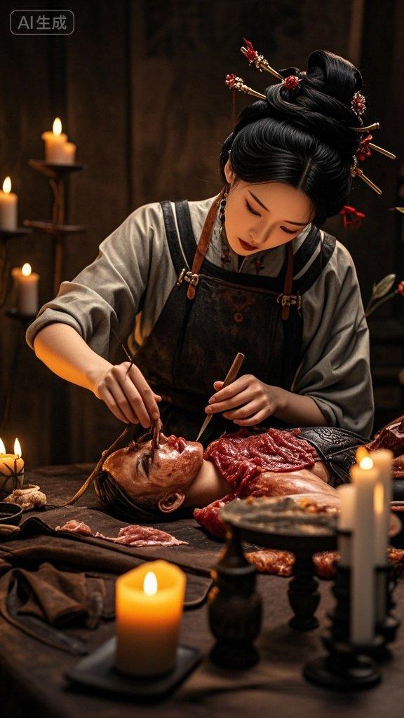 中国历史之八十……【浔州皮匠补人皮:传说中的“面子工程”】 话说清康熙年间,夏末秋初,浔州有位名叫陈巧手的皮匠,传闻他不仅能修补破损的皮革,还能“修补”人皮,甚至换脸换“面子”。传说中,他掌握一门神秘的“人皮技艺”,让人们又怕又好奇。 有一位婉娘夜深人静时,偷偷跑到陈巧手的小作坊,请他帮忙修补自己受损的面皮。陈巧手一听,眉头一皱,提出了“特殊”条件:要用灵犀胶、还魂草汁液,甚至还要用刚死的年轻女子的“心头血”作为引子。听到这些奇异的材料,婉娘面色苍白,但又觉得“救命”比什么都重要。 这件事很快在当地传开,成为一个诡异的传说。有的人说,陈巧手用这些“邪门材料”帮人“换脸”,其实是在“换魂”;有人说,他其实是个“人皮贩子”,用死者的皮做“面具”。无论真相如何,这段故事让浔州多了一份神秘色彩,也让人们在夜里偷偷怕怕:这个“皮匠”到底是魔鬼,还是天才?人皮谜团