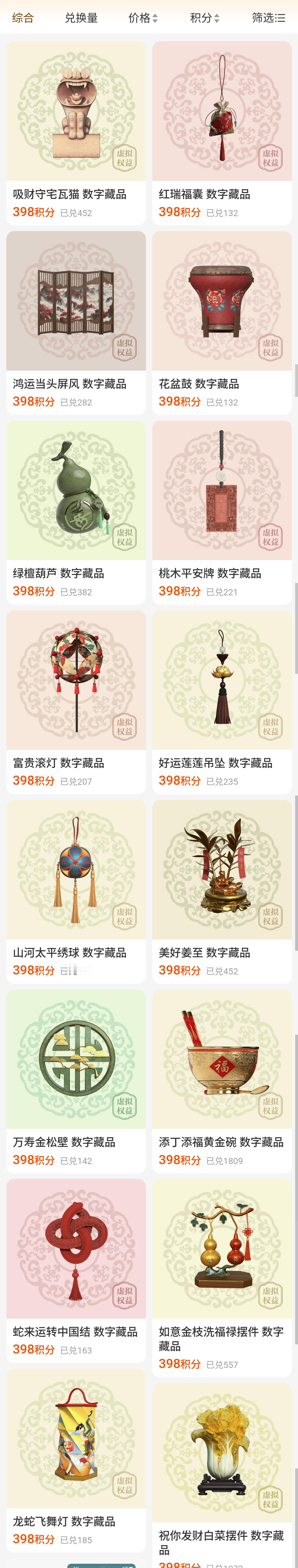 刚刚去兑换了 发现有个黄金碗 立马兑了,然后再仔细一看 我的天上了这么多呀 立马觉得积分不够用 完全不够用了 都想要呀 你想要哪个? 收藏数字藏品到底有什么意义?