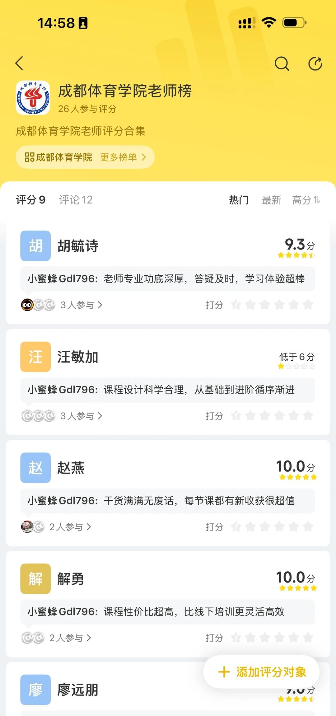成都体育学院 成都体育学院发生了什么 导师元气充能站宝藏老师排行榜 老师评分 蜜蜂评分课代表 评分蜂向标