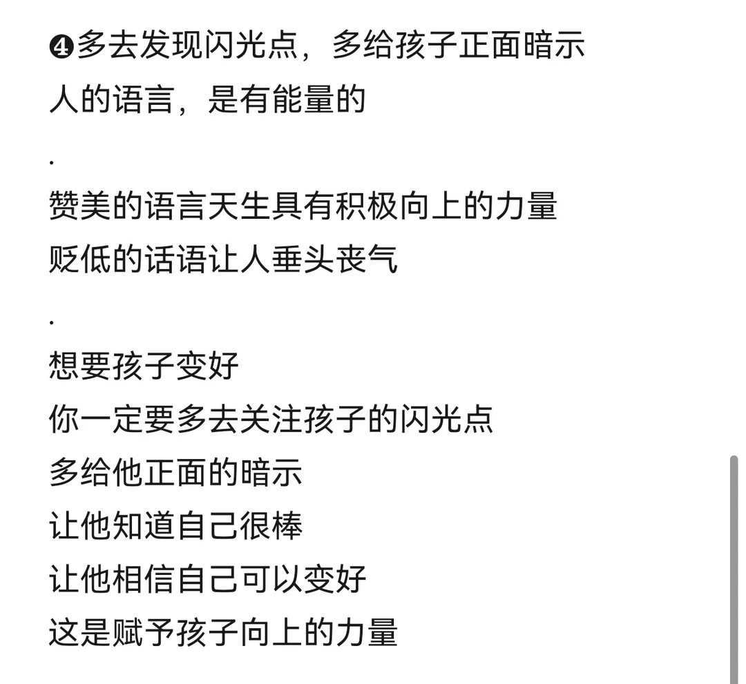 ❹多去发现闪光点,多给孩子正面暗示
