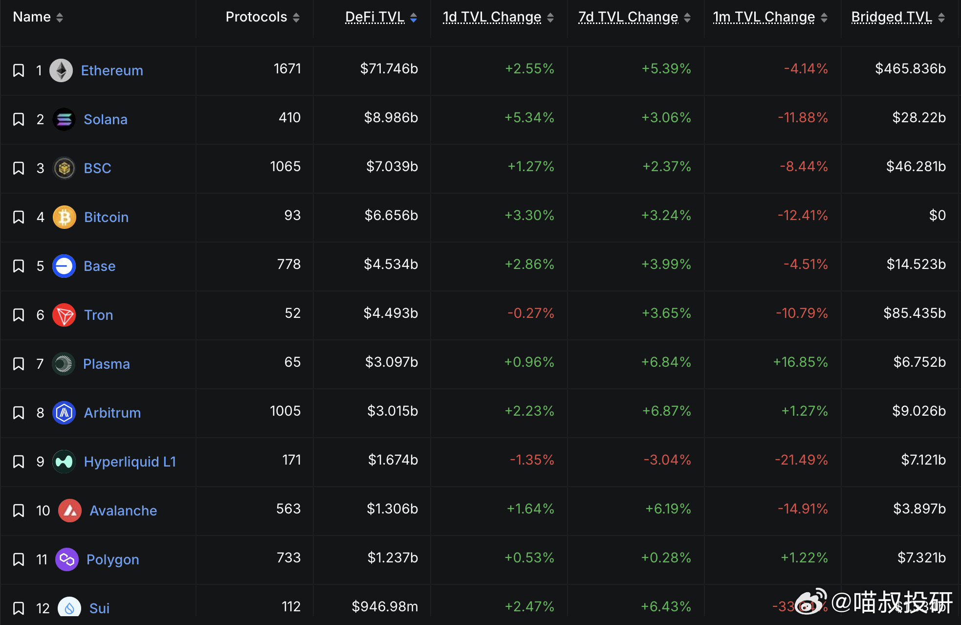 如果SUI再不改变,后期用户会越来越少在目前全链TVL排名上,SUI只排12位,TVL比POL还低在交易量上,SUI排名第10位,稍微好一点虽然目前依旧保持在15位之内但是大家要知道,当时SUI价格在4U时,SUI可以排名到第6位现在SUI的排名下降速度太快,后期如果还抓不到热点,排名应该还会继续下降当时要超越SOL的口号在目前看,很难实现至于SUI代币,喵叔目前不会去持有