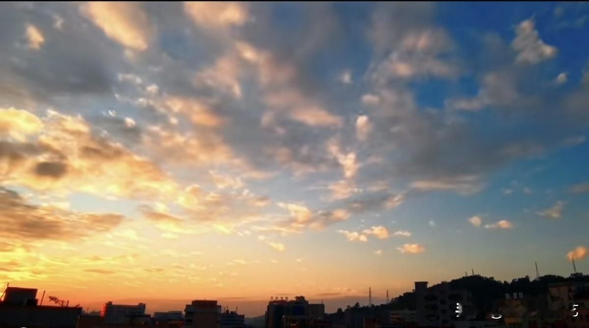 冬日生活打卡季天边像是被揉碎的金箔浸在蓝里,橙黄的霞光裹着碎云,把半片天染得暖融融的。矮楼的轮廓浸在这温柔里,连钢筋水泥都沾了点软乎乎的光晕——这大概是城市最不紧不慢的时刻,连风都裹着日落的温度。