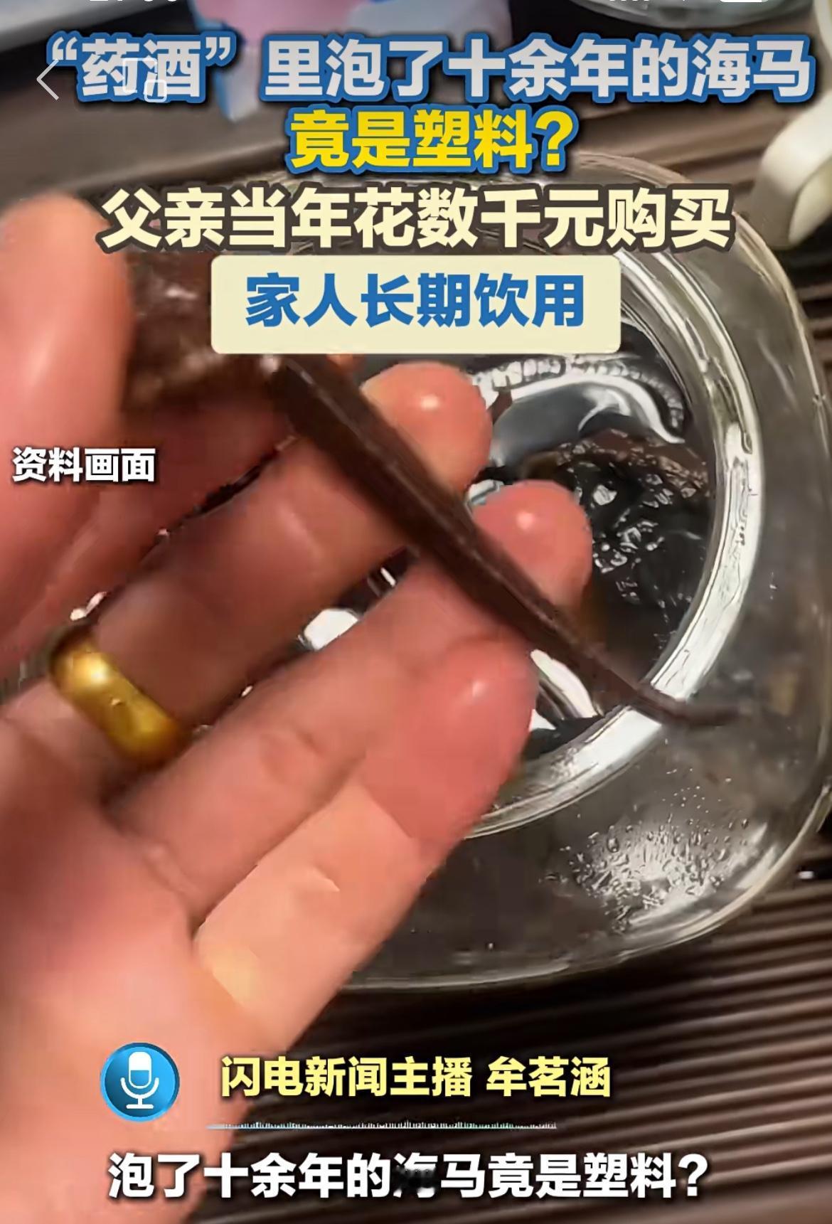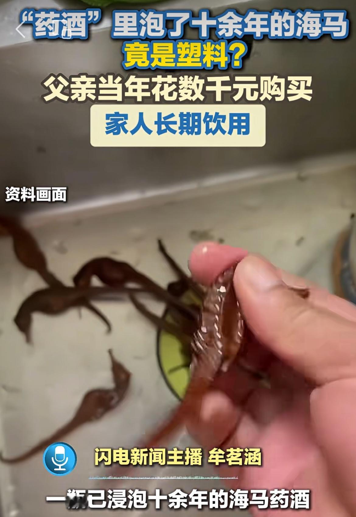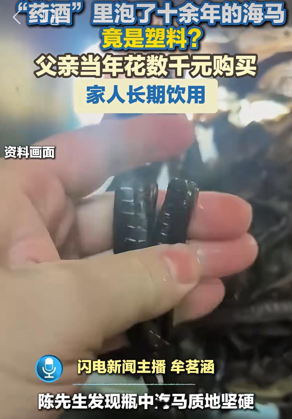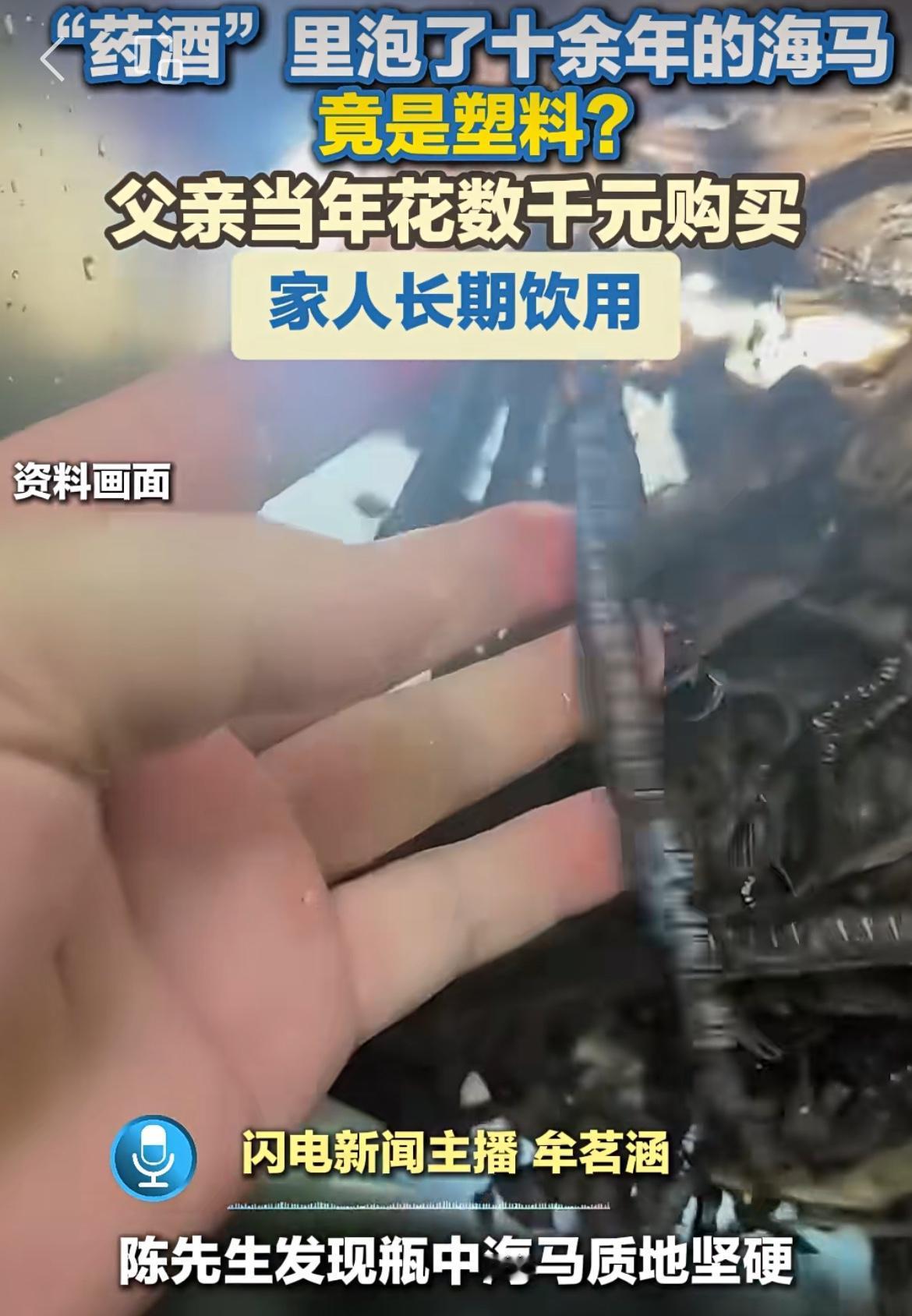 广东梅州陈某花几千元的海马药酒,海马竟然是塑料体,一家人喝了十几年。海马是广东人药酒里面的常客,什么功效老司机都知道。满心欢喜的陈某以为喝的是真的,没想到小孩意外打破酒坛,才发现真相,海马竟然弹性十足,拉扯都不会烂,才发现是塑料做的仿真海马,搞半天喝了十几年的塑料酒,当做好酒还招待了不少贵客呢?海马全景图 海马炖汤 海马干炖汤