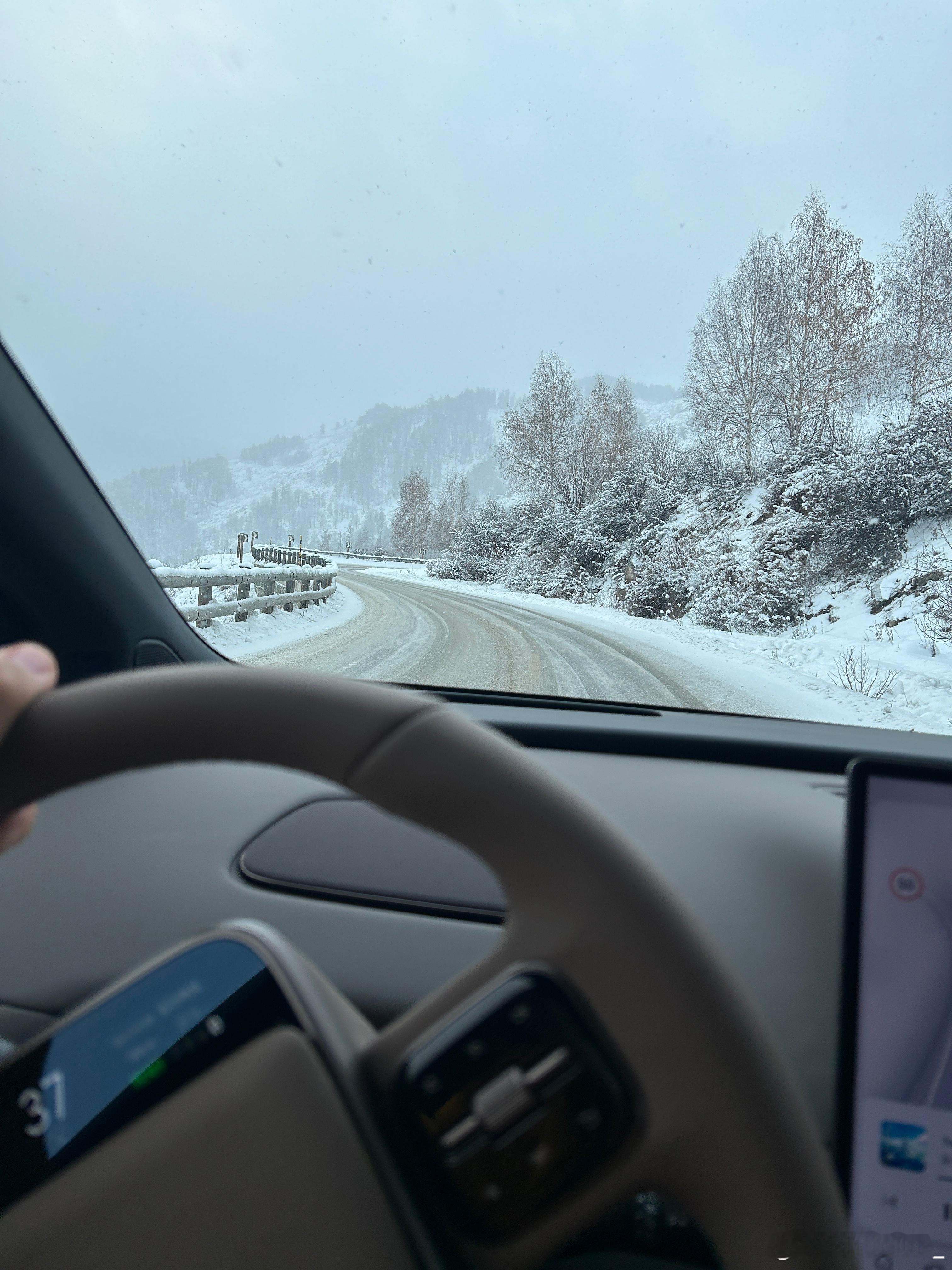 图1.上山的路上,流媒体后视镜里是禾木的日出时间,真的很漂亮,虽然最近都是下雪阴天,但也可以偶尔看到一点光带给这个村庄的氛围感(最近被无数人夸这个后视镜影像质感无敌,我说这就是独立800万像素摄像头的魅力)图2图3 图4.阿勒泰的理想太多了,刷新率贼高,我和朋友故意把车停到了雪场门口,挨在了一起,想看看大家在这儿看到这两台车有什么反应[让我看看]图5 图6. 滑雪途中遇到的天空之门和丁达尔效应,好运~图7 图8. 正在雪地里录素材的我,卖命每一天。图9 图10. 禾木去喀纳斯的路上,本来今天不计划走,but在刚滑了一趟雪之后接到通知下午5点要封路,必须在5点前出禾木,所以赶紧溜了,禾木去往喀纳斯的路要更危险一些,积雪比较多,好在咱4驱,还是雪地胎,开了湿滑路面很稳定,也是前两天洪巴斯那个漂移给我整自闭了,这车我故意漂都漂不起来图11.本来计划在贾登峪补能,发现充电站要不就是关闭的,要不就是不能用,图7这个,看似一切正常,但是插上枪扫了码付了钱不充电,我倒是不慌,因为续航里程还有200多公里,这段时间在阿勒泰的续航表现我心里很有底,所以一点都不慌~就继续跑了,现在到喀纳斯图瓦村了,还有170多公里续航,但村里没有充电桩,快充慢充都没有,我给n个民宿酒店打了电话都没有,我开始慌了,明天还要拍摄,还要去白哈巴.........[撇嘴]图12 图13.再重复一遍,禾木去喀纳斯的路太美了,太美了,公路一边是满山的树,一边是喀纳斯河,像一幅画一样~图14 图15. 禾木的那个好朋友帮我介绍了一个民宿老板,也是理想车主,原本她冬天不在这边就把桩断电了,刚才了解到我的情况之后让管家把电通了..真救了我的狗命,想想都怪冬冬(禾木的朋友,理想全系列车主,在阿勒泰这边搞旅游、滑雪相关的事业),他在阿勒泰已经建了5C,可可托海的明年也会建成,禾木也会建,就这边还没建,我已经跟他说了,他说明年一定建5C,我暂且相信他一下,也就是说我明年来阿勒泰,5C全线,充电无忧。好了不说了 我要去充电了~