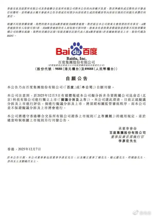 所以我们说,百度自己本身3000亿的市值里,就藏着一个3000亿,应该没有任何问题。从资本运作上说,让昆仑芯单飞绝对合情合理。