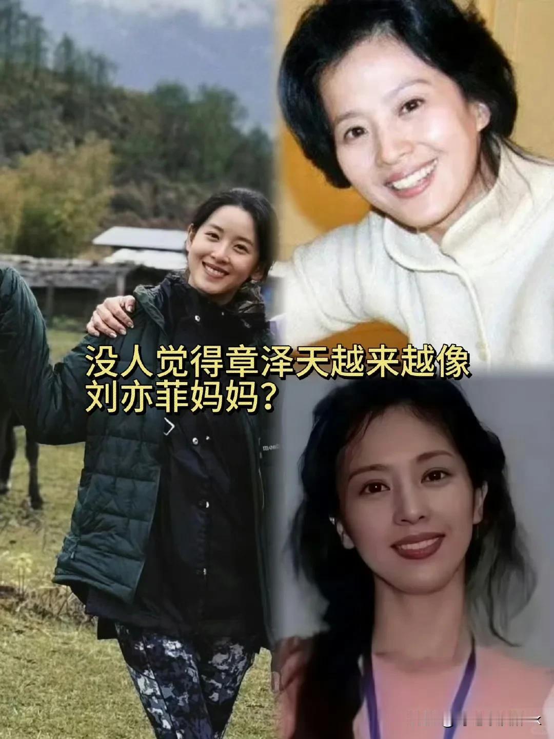 没有人觉得刘亦菲妈妈和章泽天很像吗?比亲生的还像 以前章泽天年纪小,脸很幼态,如今年纪稍微大了一点,加上生了孩子,浑身散发母性光辉,反而越来越像一个人了,那就是刘亦菲的妈妈,刘晓莉女士 刘亦菲是公认的神仙颜值,刘亦菲的妈妈就更胜一筹了,而且是学舞蹈的,气质更好,刘亦菲还说自己没有遗传到位 感觉章泽天经历一些事情以后,身上成熟稳重的气质,和刘妈妈更像了,不过娱乐圈有很多这样的,没有血缘关系的人,长得像,比如董璇佟丽娅,白百何和王珞丹……