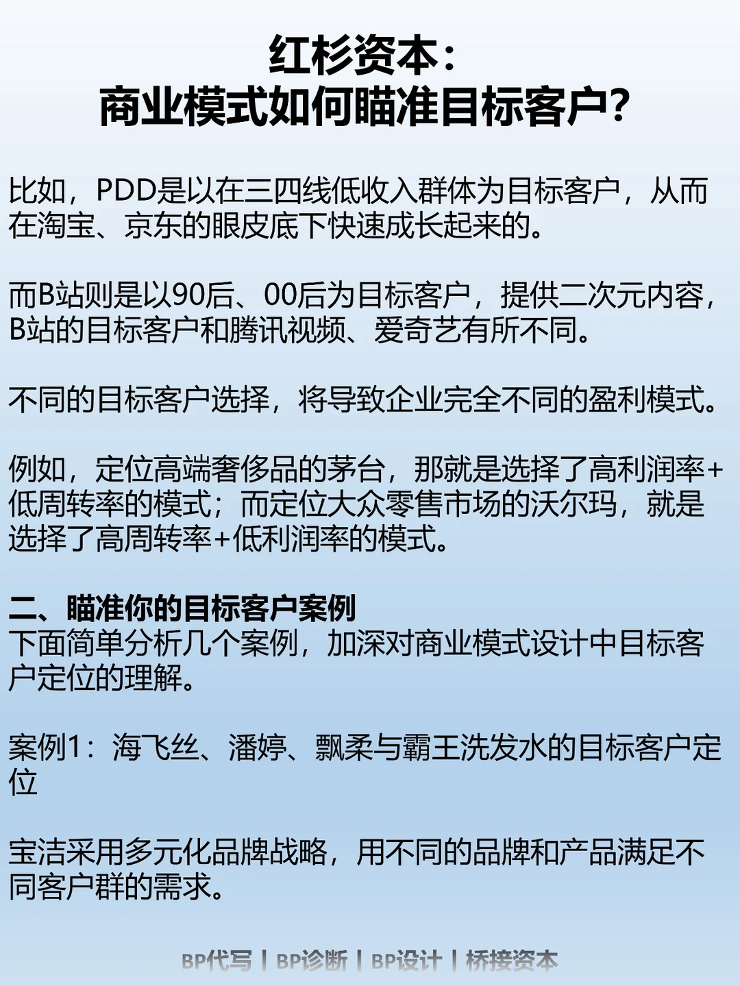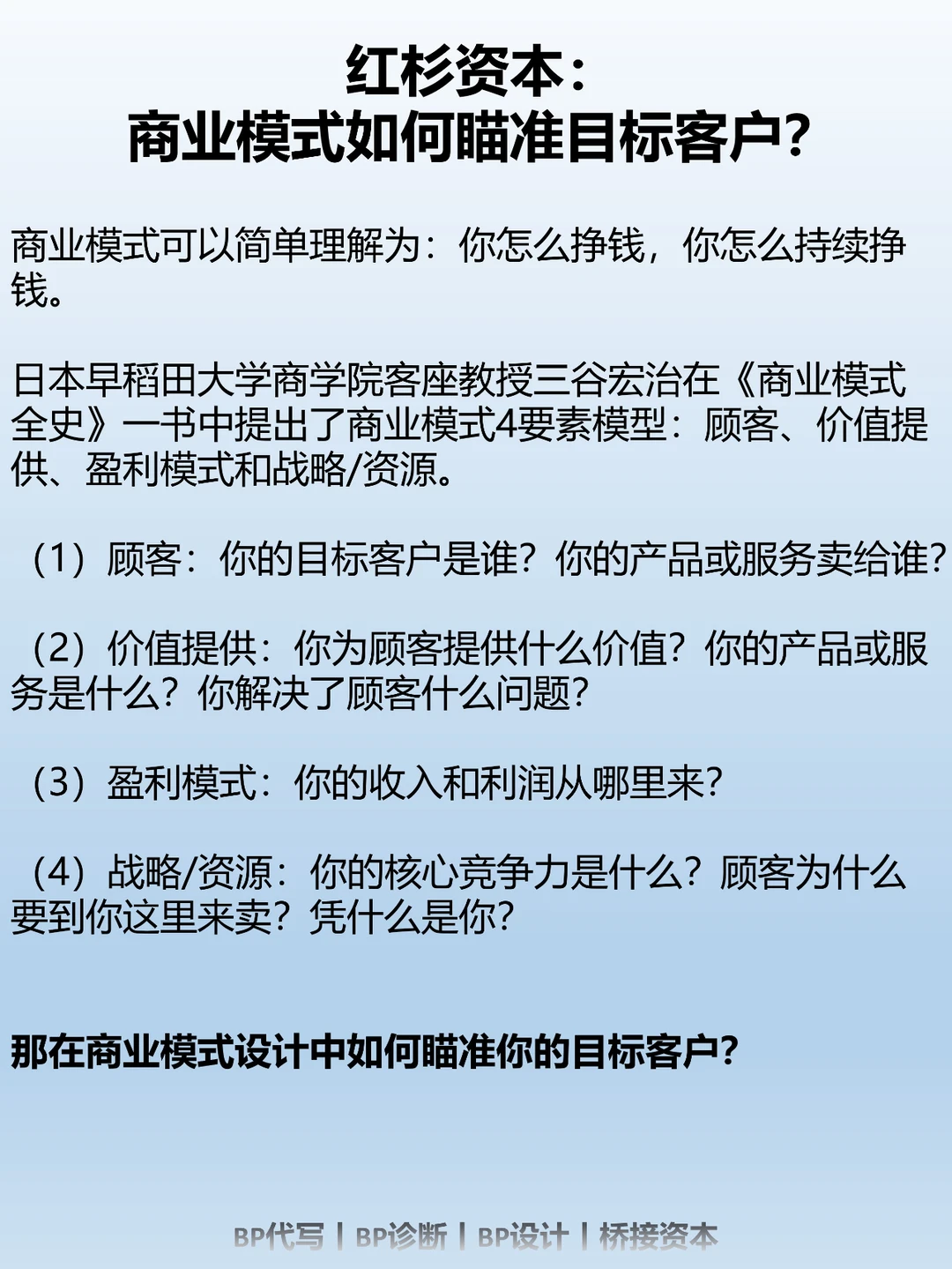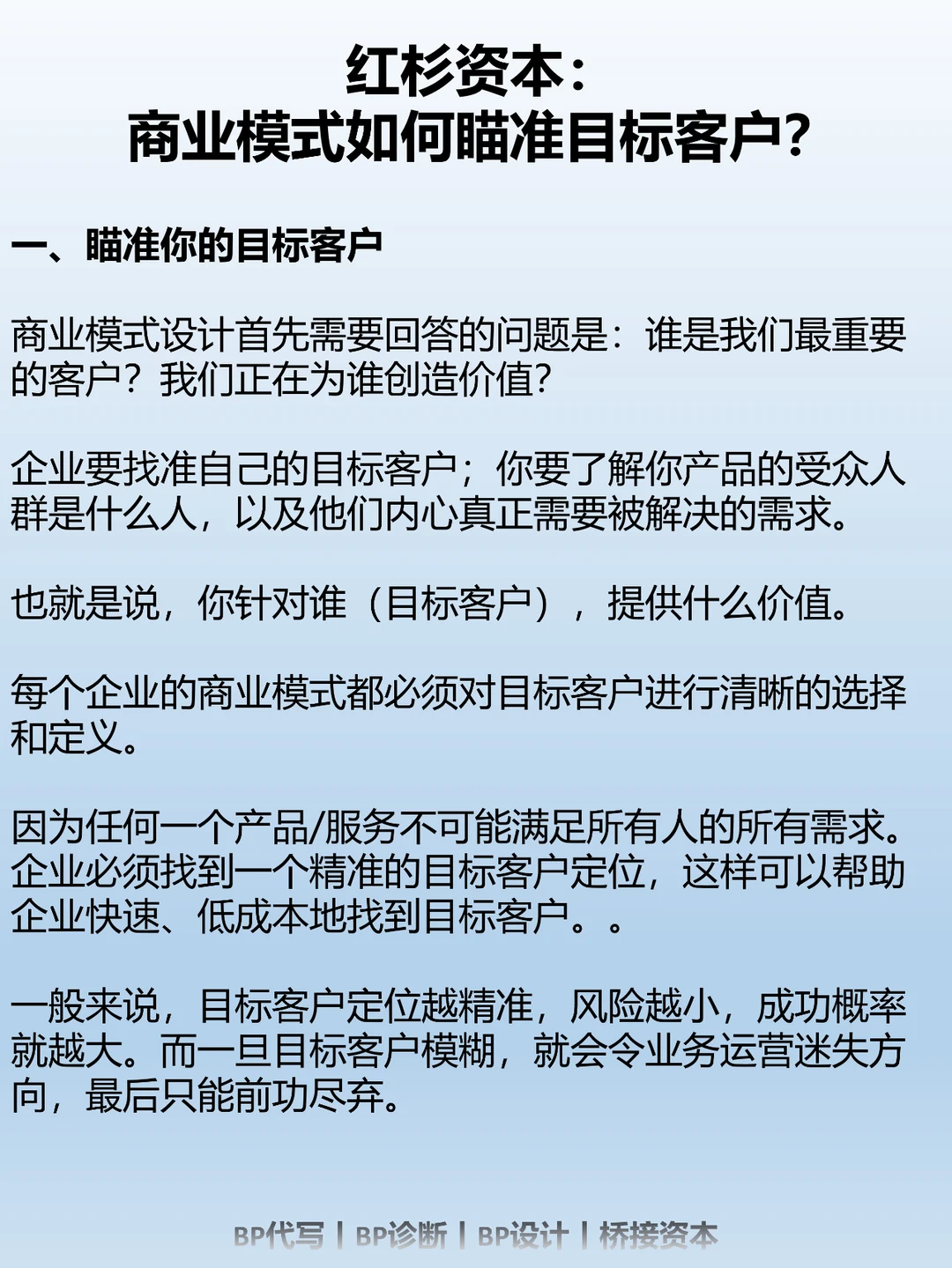 商业模式瞄准目标客户的关键在于以下几个方面:
