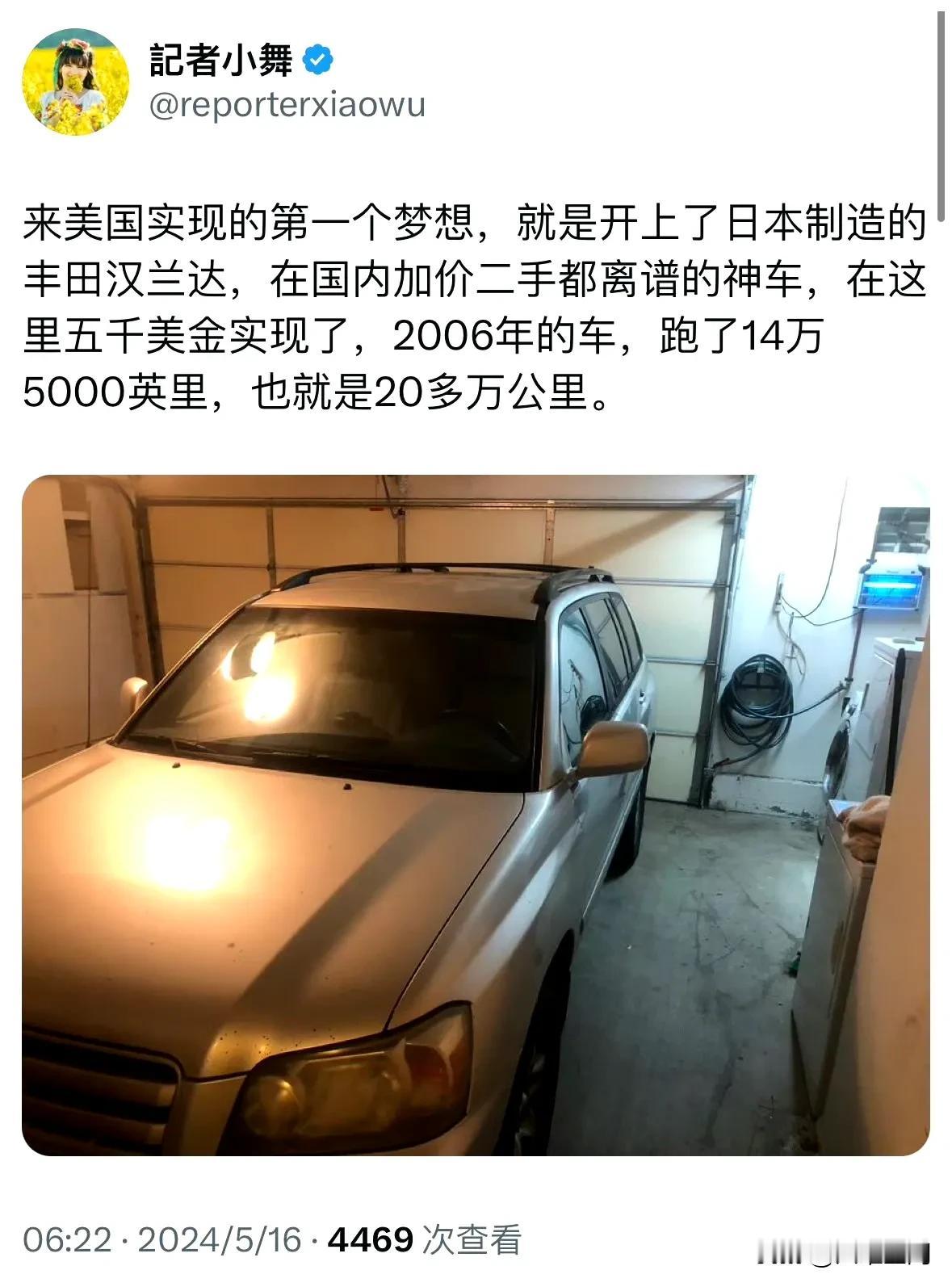 国内的记者润到美国送外卖,然后说在美国送外卖也比中国好,因为有赏钱有零食,看见个狗尾巴草也说比中国好,然后说美国让它实现了第一梦,就是五千美金买了一辆20年的里程20万公里的丰田,还说这个车在国内是加价二手到离谱的神车! 这些人都已经润出去了,为什么每天发的东西还是离不开国内,一定要强调比国内,人越缺乏什么,就越强调什么,这些润人,其实就是国内对它们太好了,才会滋生这种莫名其妙的恨,如果它在国内送外卖,买个20年的二手车,肯定是觉得这个社会对不起它,让它过得这么差,然后在网上骂这个,骂那个,但是去到美国,送外卖,卖个20年的二手车,叫做实现梦想,归根结底就是国内对这群润人太好,才有这种恨!而且这个人本来在国内是记者,工资水平肯定不差,更加体面!明明就是自己思想有问题,才会润出去!