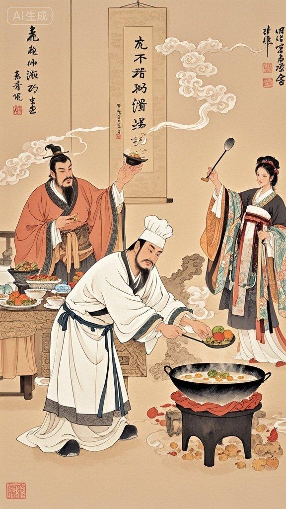 中国历史之八十四……伊尹以味治国。 说起伊尹这个“古代美食家”,你绝对想不到,他竟然用“调味”来治国!伊尹原是有莘氏的厨师,平日里掌勺调味、烹饪佳肴。有一天,他在见到商汤时,突然灵机一动:“治理国家,就像调味一样,调和五味需火候,宽严得当才能百味皆宜。”他当场演示“久而不弊、熟而不烂”的烹饪技巧,汤听得津津有味,立刻奉他为贤相。 更有趣的是,为了让汤重视民生,伊尹还“故意”做出“过咸”“过淡”的菜肴,试探汤的反应。当汤追问“这菜为何如此不同?”时,伊尹借机劝谏:“为政如调味,不可偏废,咸淡适中才能百姓安康。”这番话堪称“上古版的‘美食家治国’”。 于是,伊尹用“味道”引领商汤,开创了“以味治国”的奇妙局面。谁说古代没有“厨艺”,这位贤相用一手“调味”,把国家治理变成了“烹饪艺术”,真是“厨神治国,味道天下”!伊尹传奇