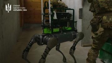 乌克兰国家安全局特种作战中心“A”的宣传片中,出现了一只来自东方的Unitree优利特机器人公司生产的B2型机器狗,它配备了一支捷克制造的Bren 2短管自动步枪。