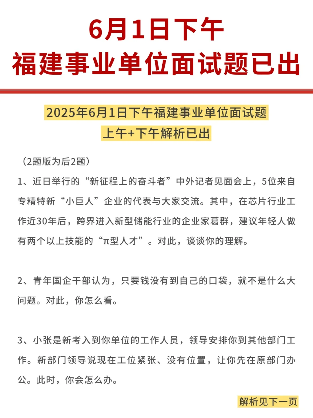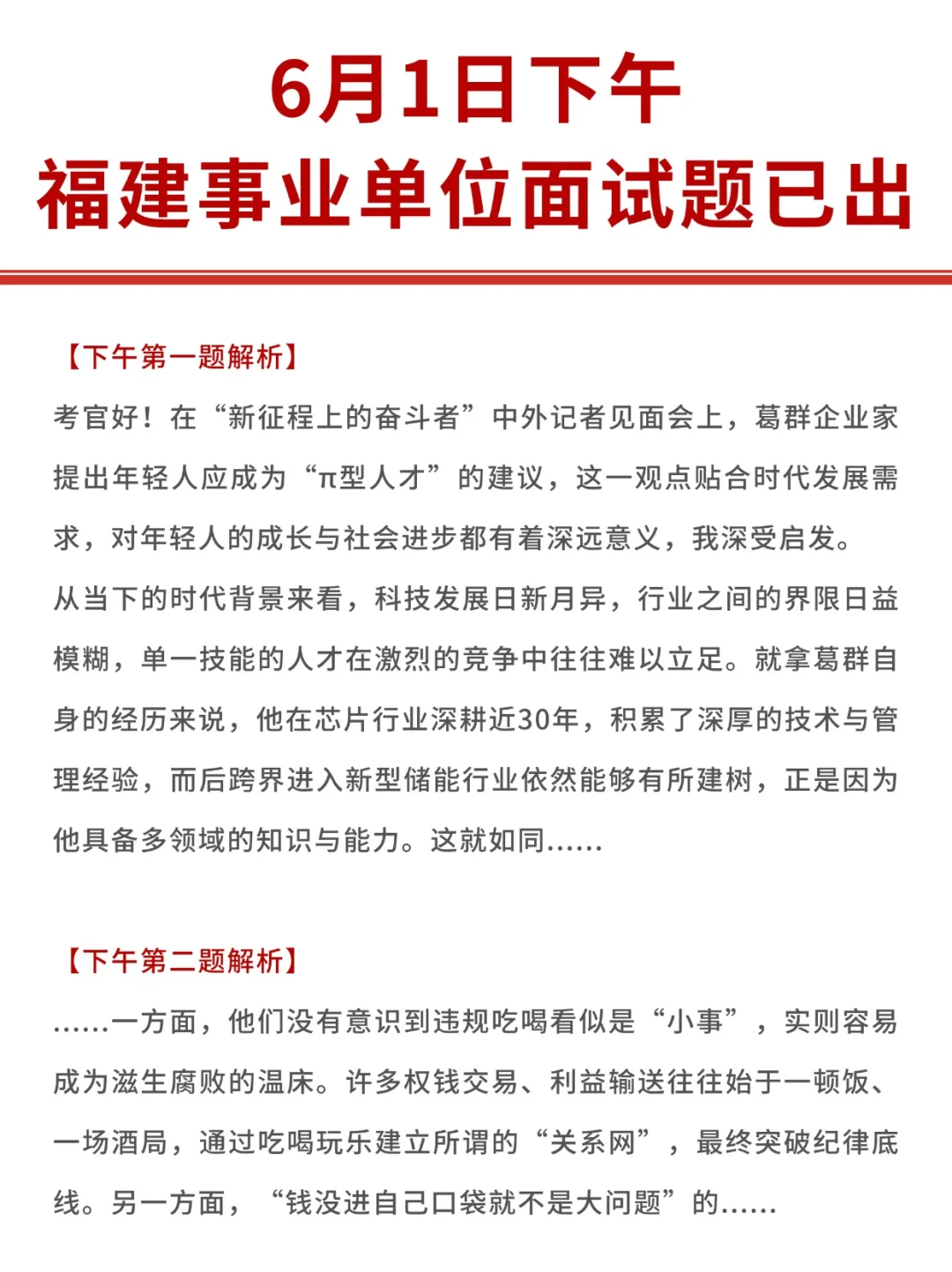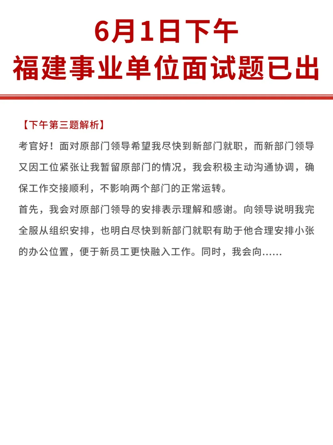福建事业单位面试题6月1日上午和下午的解析均已出