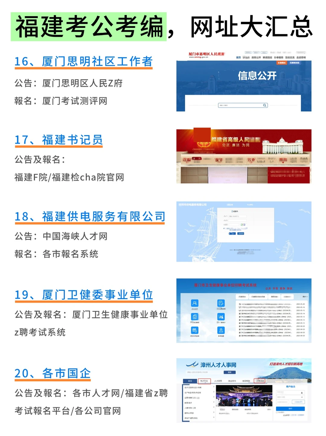 2026福建省准备考公考编的同学看这里!所有考试网 址大全: