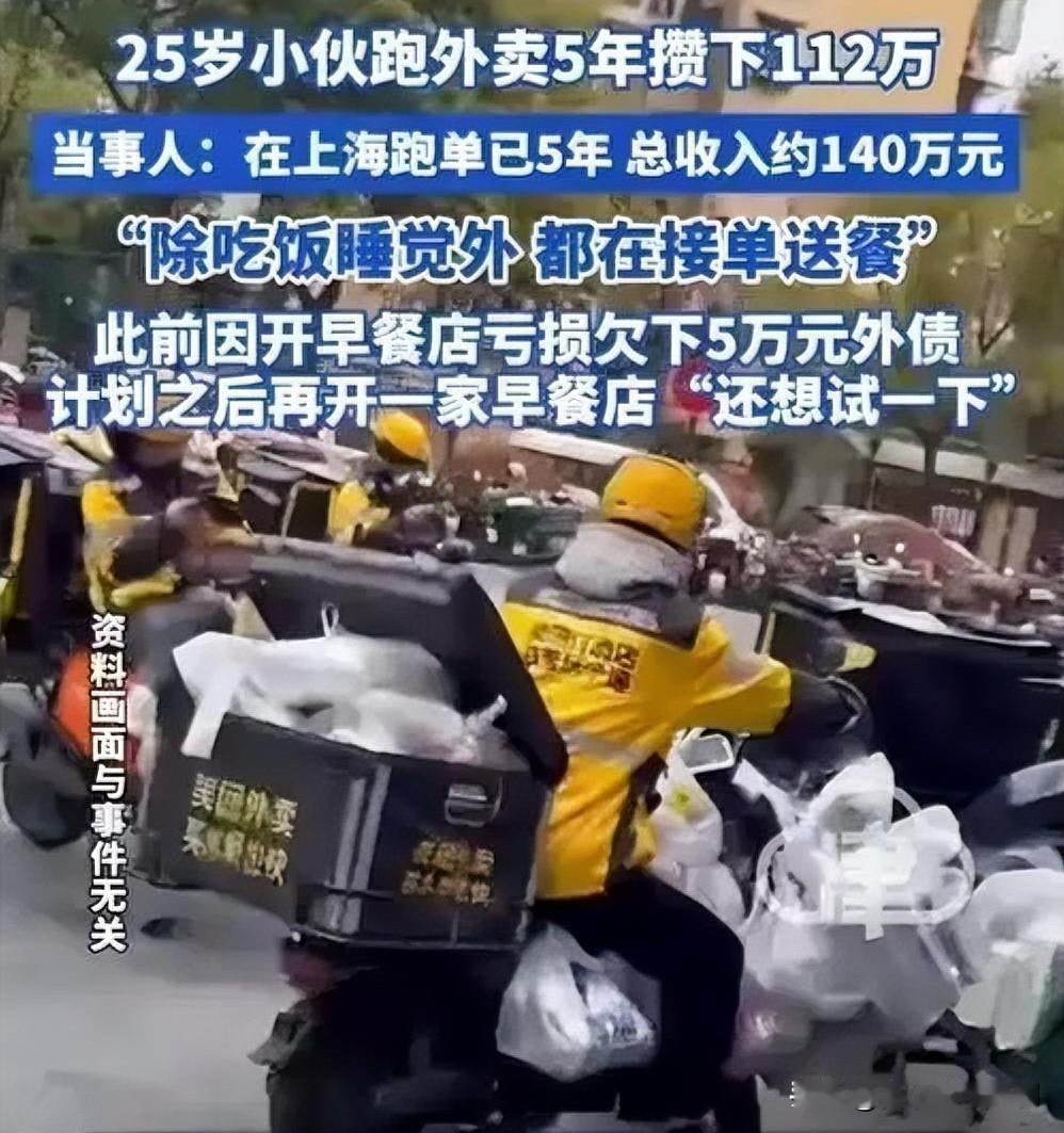 00后外卖小哥逆袭!5年攒下112万 谁能想到,一位00后小伙靠跑外卖,5年竟攒下112万!他每天天不亮就出门,风雨无阻穿梭在城市街头。为了多接单,常常顾不上吃饭喝水。别人休息时,他还在跑单。凭借这份坚持和努力,他实现了财富积累。他用行动证明,只要肯吃苦、肯奋斗,年轻人也能创造奇迹。大家有没有被他的故事激励到?