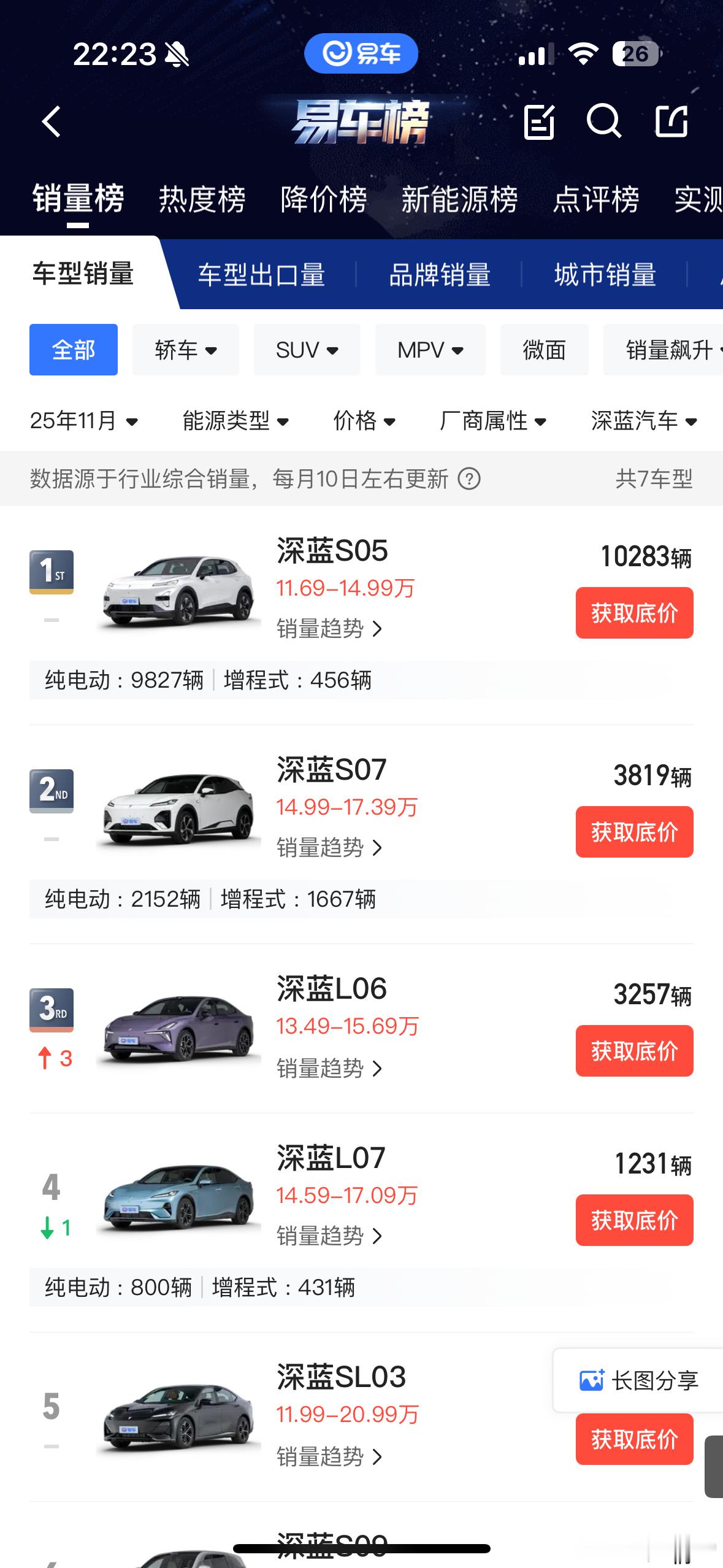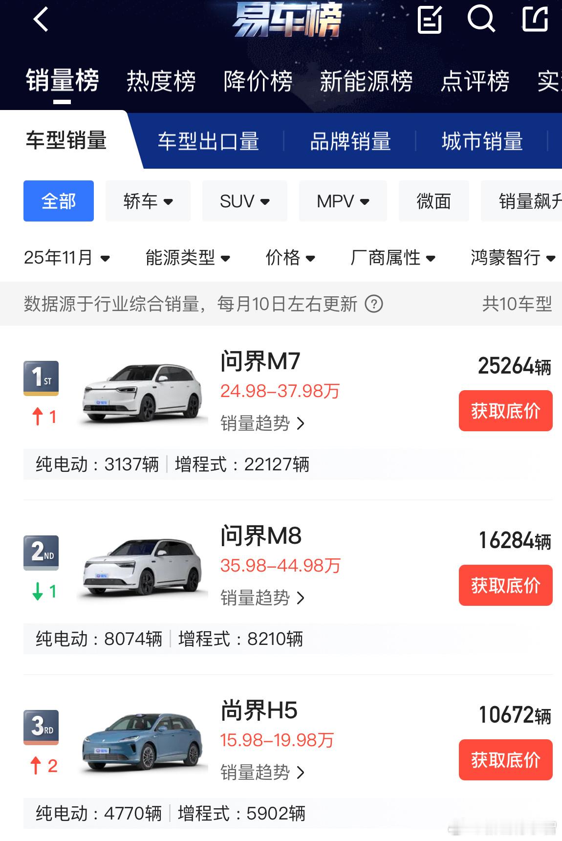 我发现一个很有意思的地方:以前一台车有增程和纯电,一般比例都是9比1,增程都是碾压纯电,形势最近开始变化了。阿维塔零跑深蓝,很多车都是纯电多于增程了,连之前最强的问界,也在M8上发生变化了,回头我拿到整体数据,再分析一篇详细的。