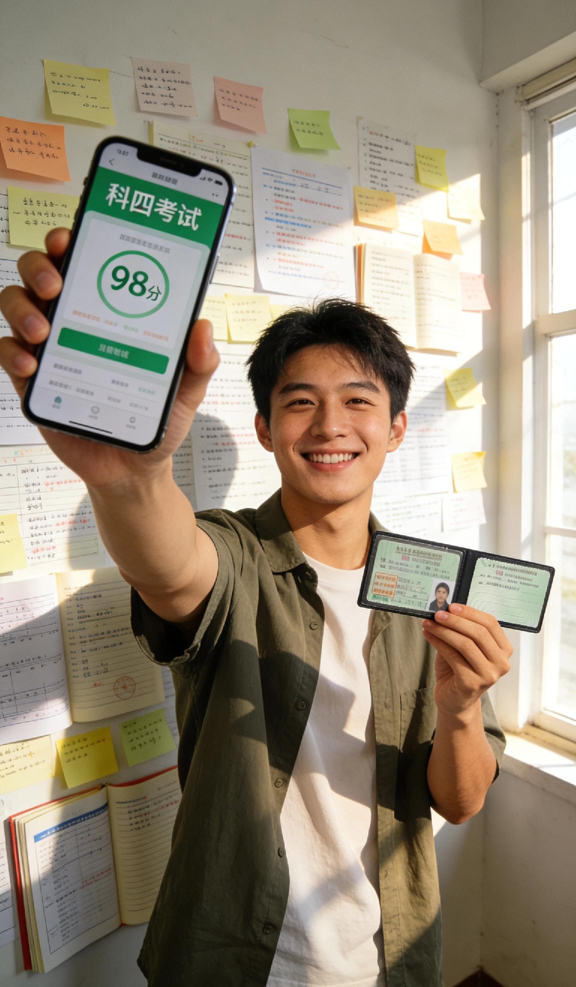 刷题到眼酸,模拟错到心慌,科四的“陷阱题”真的会让人反复崩溃~ 从第一次紧张漏看题干,到第二次沉稳审题,每一次复盘都是底气叠加。终于以98分稳稳过关,解锁驾驶证的最后一道关卡!那些熬过的题、记过的知识点,都成了奔赴自由的勋章🚗💨(个人观点,仅供参考)c2自动档驾照 c2科二考试