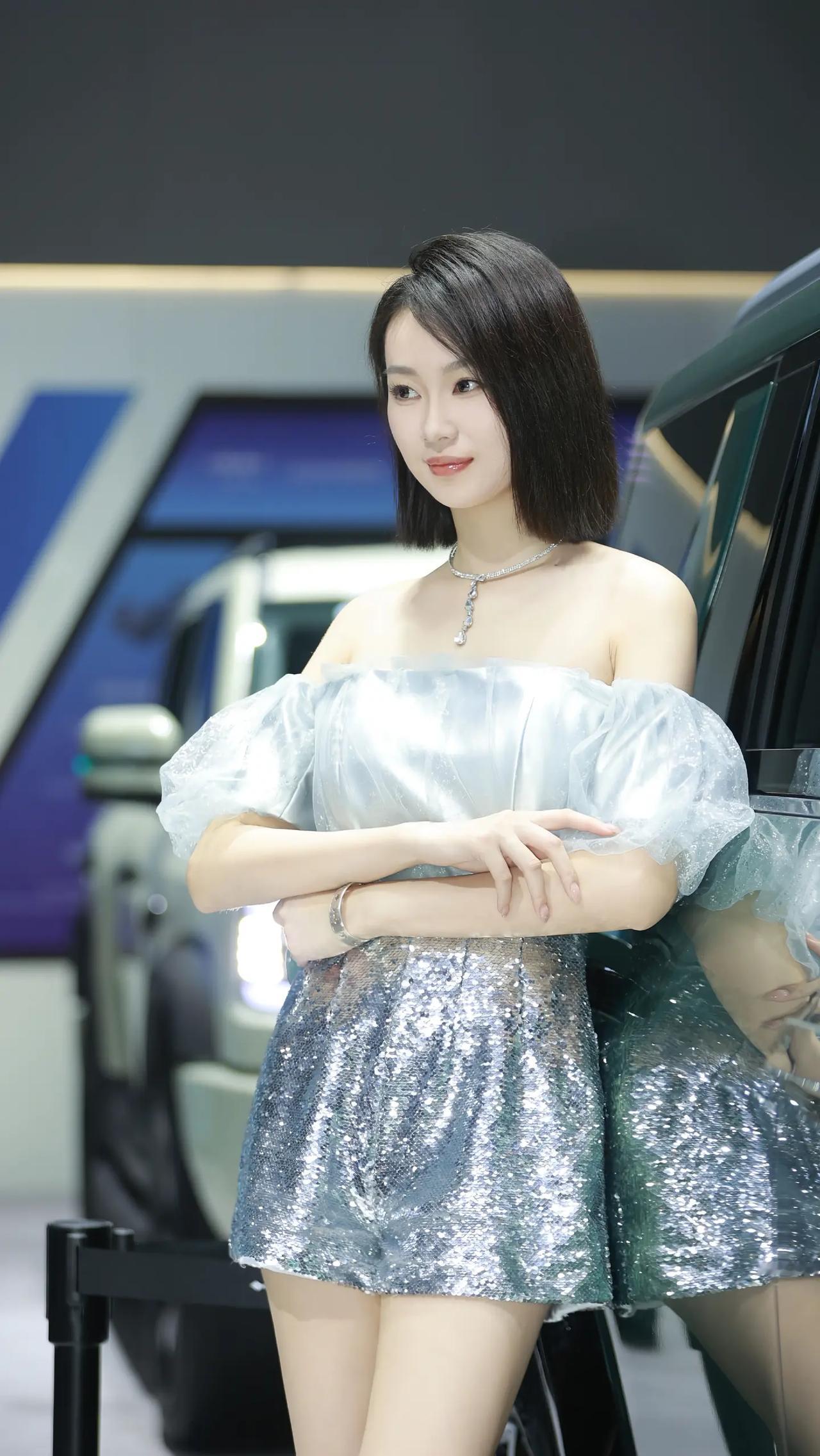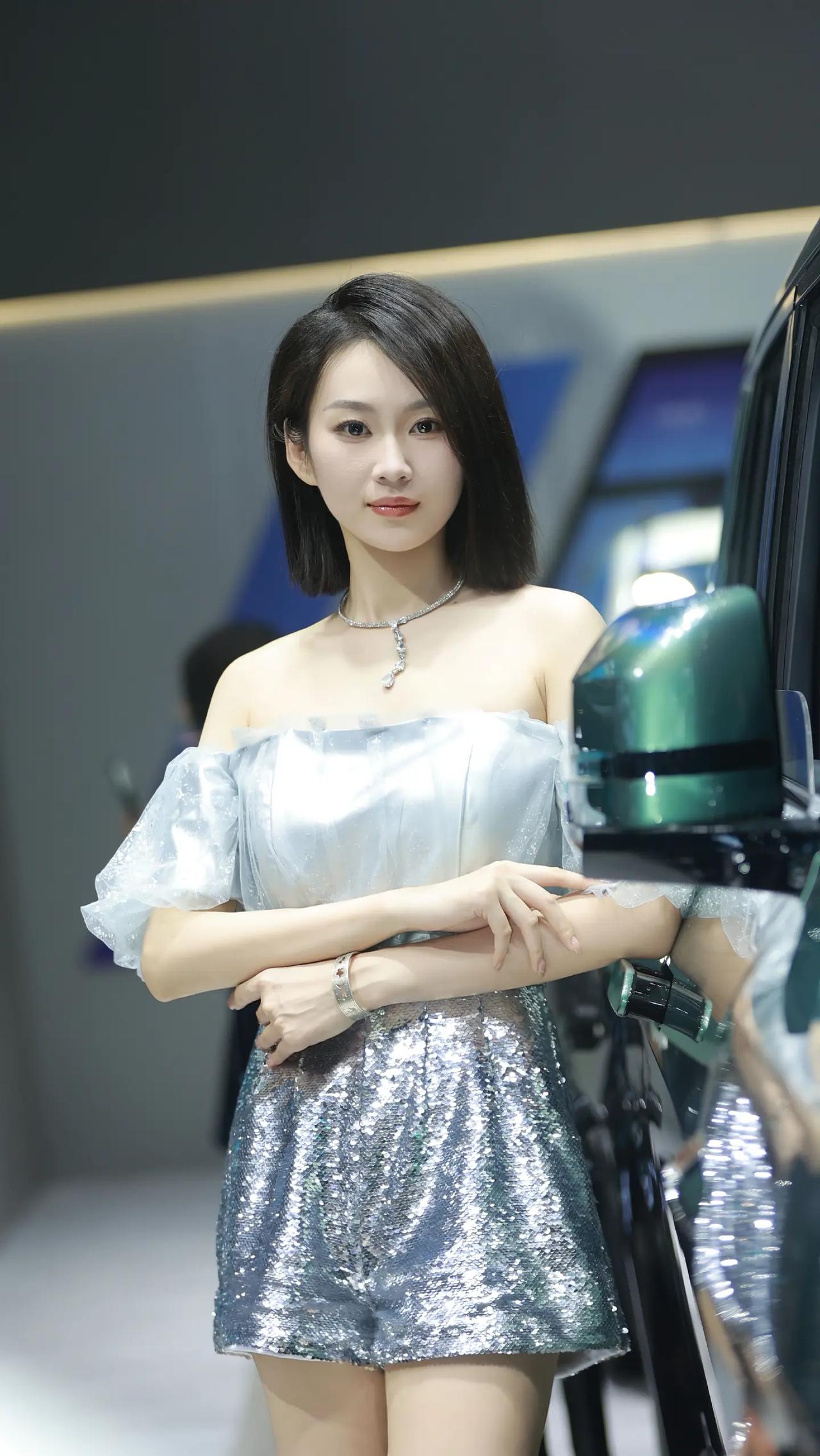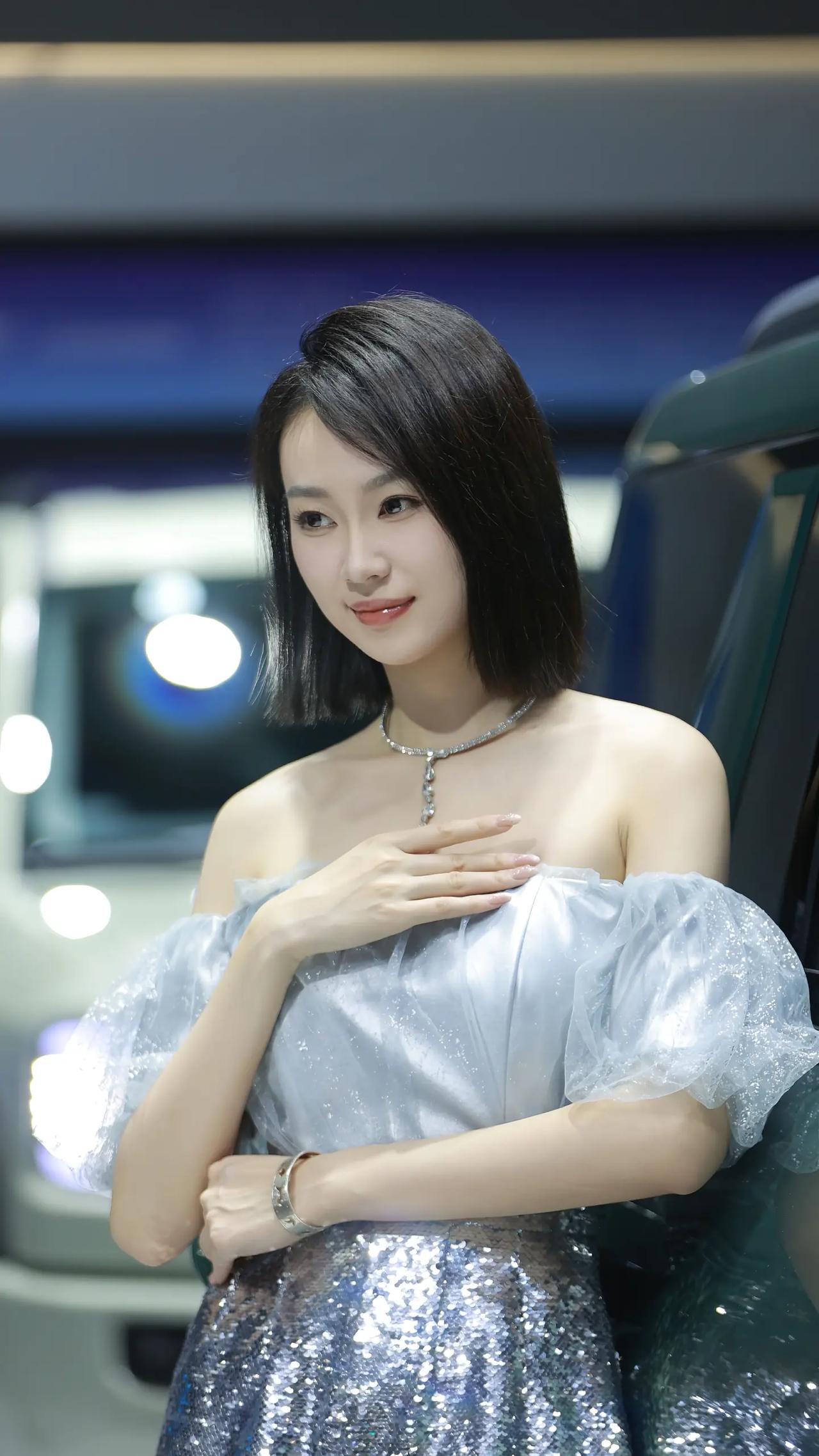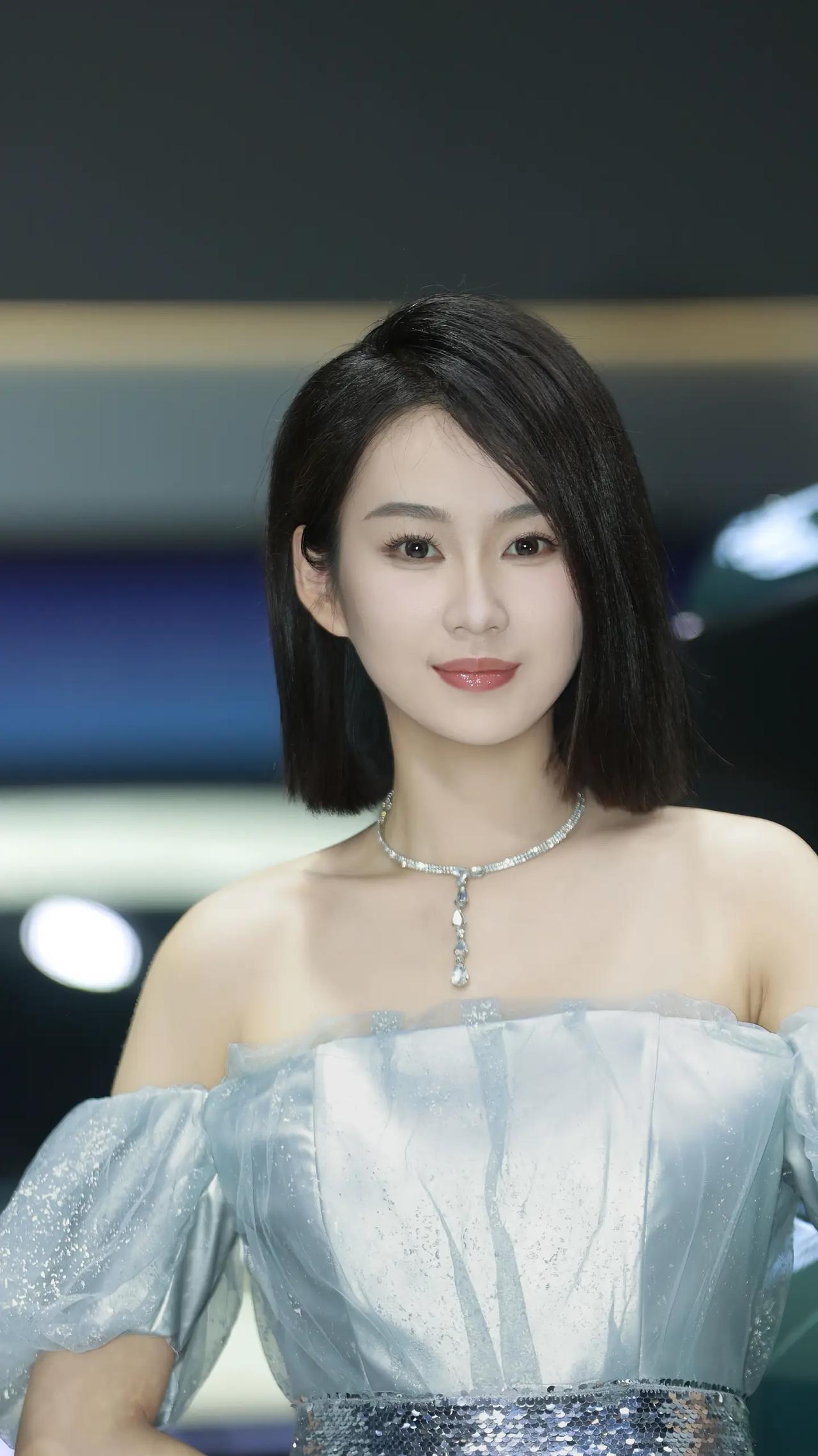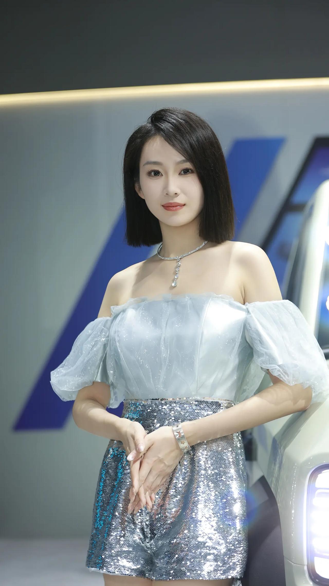 银蓝珠光,车展的惊艳时刻。 冰蓝缎面裹挟着细碎钻光,一字肩纱袖垂落温柔弧度,亮片在光影里流转成银河碎影。短发利落勾勒下颌线条,冷调妆容衬托肌肤雪白,既有缎面的柔润质感,又有亮片的闪耀张力。 站在镜头前,不刻意张扬却自带焦点,每一次转身都带着恰到好处的疏离与优雅。不是热烈的明艳,而是如月光般清透的惊艳,把车展的摩登与自身的清冷气质完美融合,随手一拍都是氛围感大片。