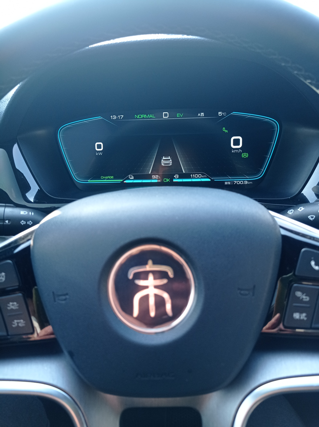 高速一箱油的油耗 一人一天1335,第一箱油纯油跑了700km,均速110左右。然后服务区加油,充了会电。油耗不低,估计现在油品也不行了。这是没咋开暖风。车机显示相当不准啊。