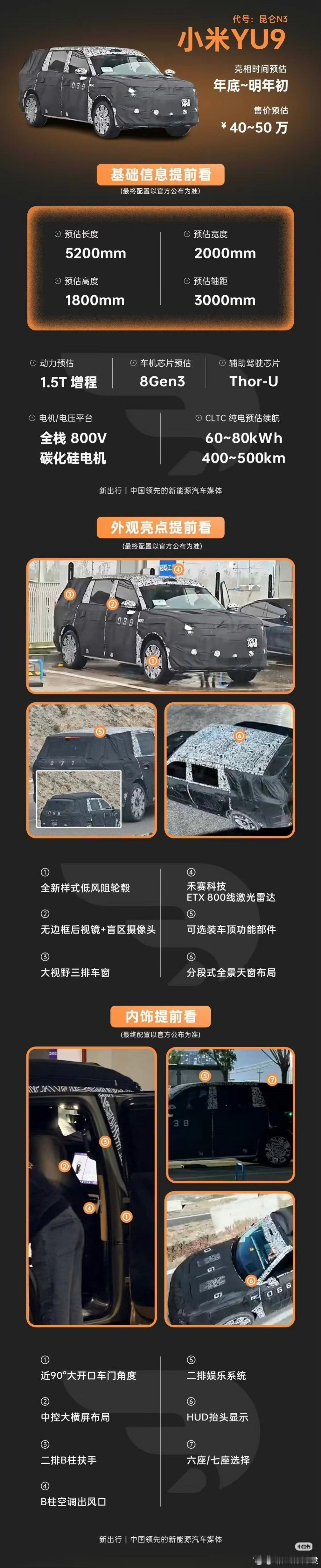 小米三款新车齐曝光小米即将上市的三款新车:小米YU9、小米YU7GT和小米SU7L。MPV车型要来了!