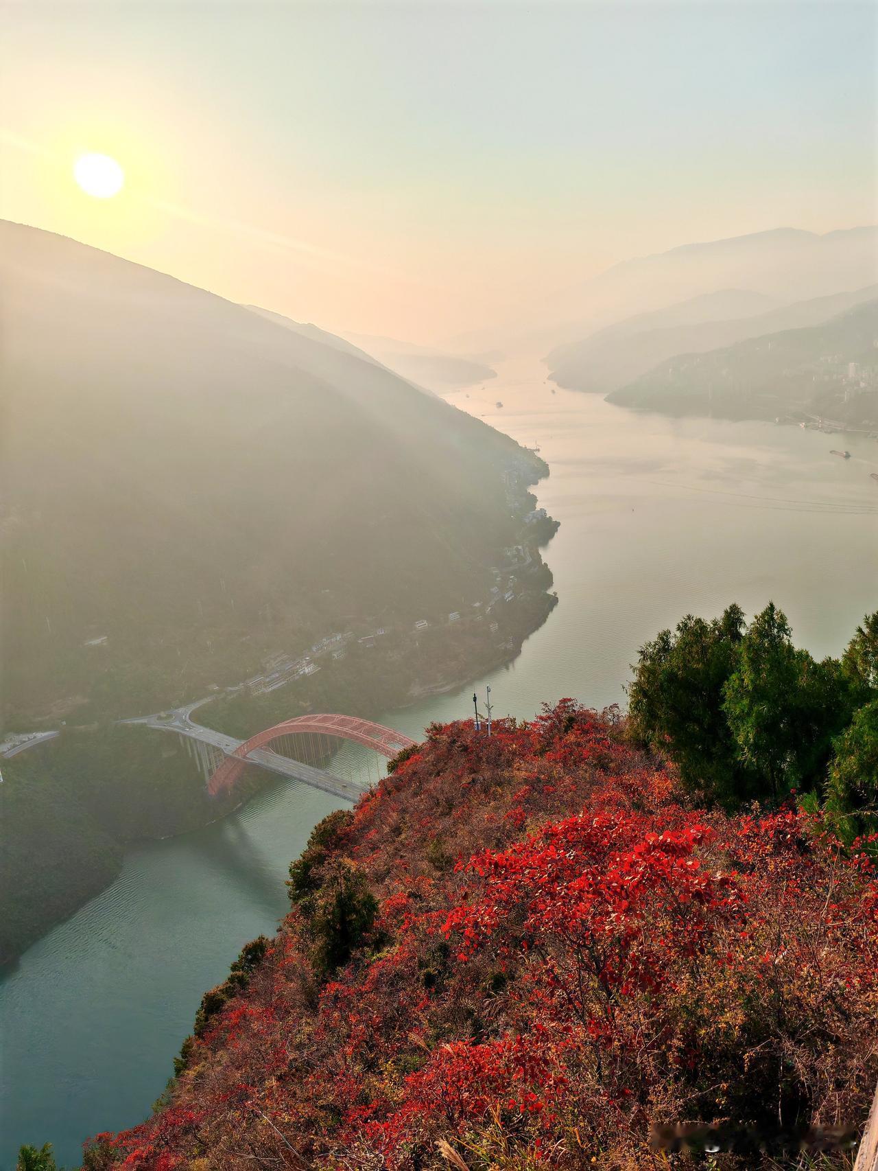 现在去巫山三峡龙脊看红叶正当时!11月19日,“三峡龙脊”就已披上如火红叶,与碧绿巫峡长江水构成壮美画卷。到了12月中旬,长江巫峡一带更是进入红叶最佳观赏期,如果遇见灿灿的阳光加持,山水与红叶交相辉映,更是美得如诗如画。 近年来,巫山结合建设方案,栽植了黄栌、枫香等红叶树种,打造景观带,还举办红叶节提升其观赏性和美誉度。心动不如行动,别犹豫,赶紧来重庆三峡感受这漫山红叶的美,给自己年末来一场难忘的旅行。 冬日生生活打卡