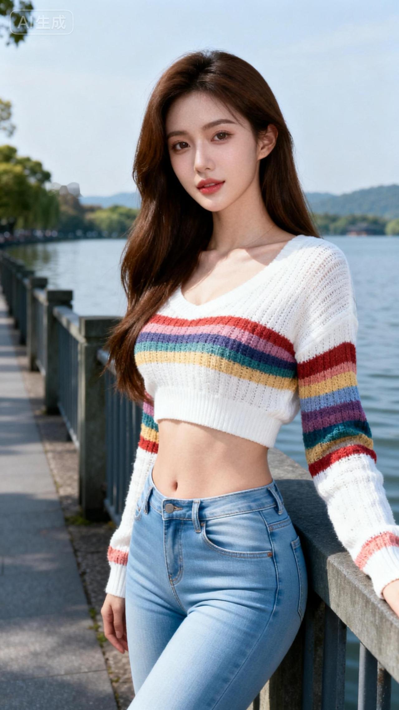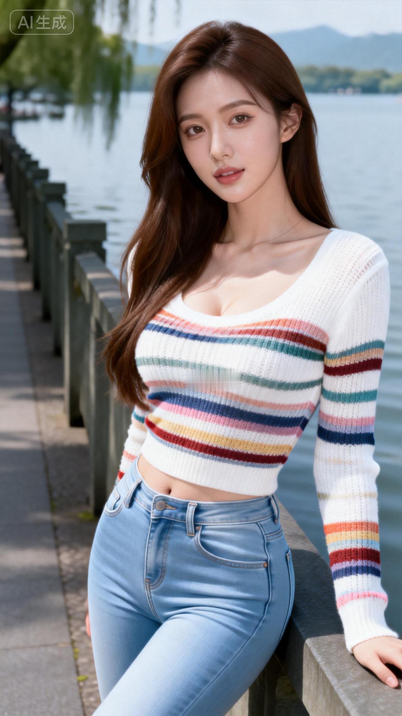 湖畔美人倚栏杆,春风吹面笑语闲。美少女美景分享