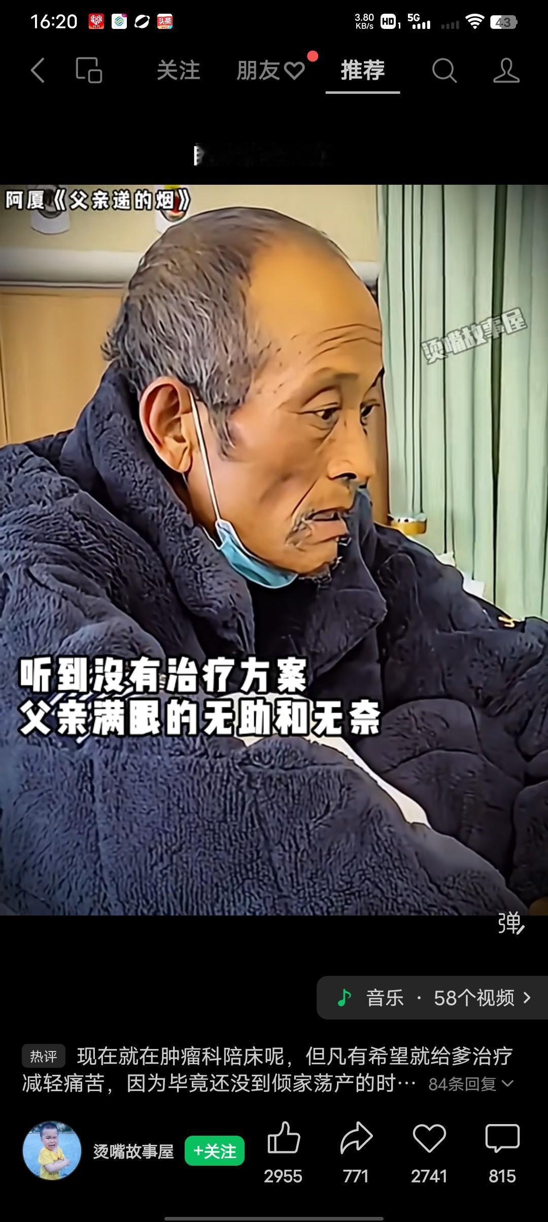 爸,今天收拾收拾出院,“出院干啥,去哪儿啊?”医生说没有好的治疗方案,让我们回家养着。 父亲身患癌症晚期儿子直观的劝父亲出院回家,当这个满脸倦容的老父亲,听到儿子说医生没有好的治疗方案时,眼里瞬间就没了光,在那一刻好像他的生命瞬间就到了尽头。 好像在医院他的病就有好的可能,他的命就有希望,只要回家待着就是在等死。也有人说好死不如赖活着,蝼蚁尚且偷生,何况人呢?可有时候就算努力的想活,可命运偏偏不如人意。 有人说这儿子就不知道换个方式跟老人说吗?哪怕是善意的谎言也好,老人的这个情况,以这样的方式告诉他,只会让他早走几天。都说有狠心的儿女,没有狠心的爹娘,假如换个身份,想只要有一点希望父母也不会放弃孩子。 看到了,这位父亲我想到了我的奶奶,曾经我奶奶也是这样神情,她是脑出血然后医院拒收,让我们出院,我奶奶问我爸咱就这样回去不治了?我爸说治一定得治,你的病没事。