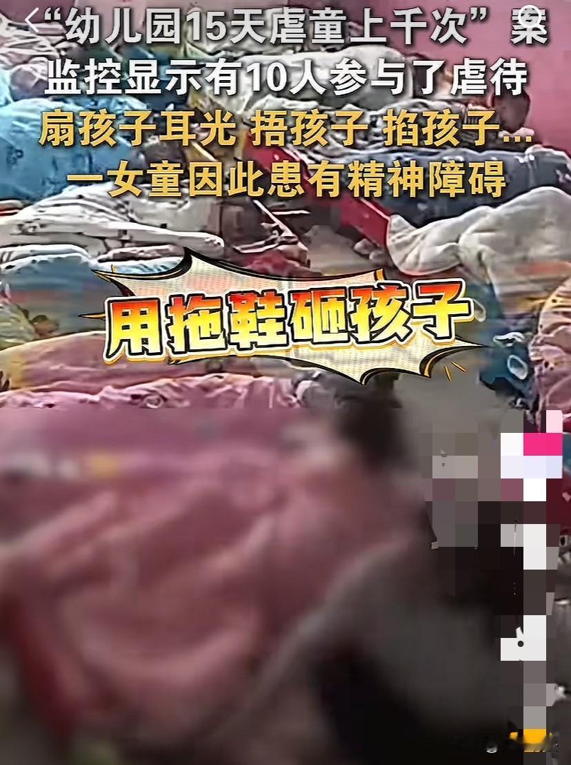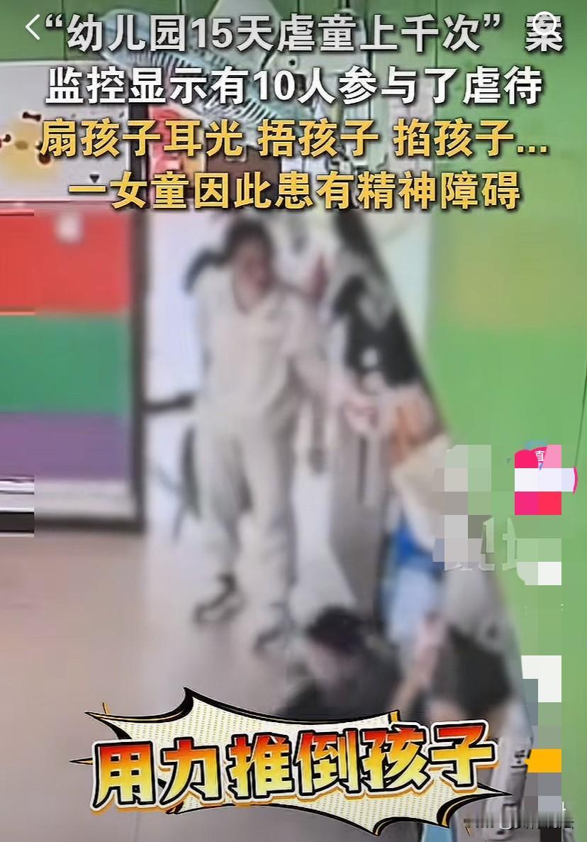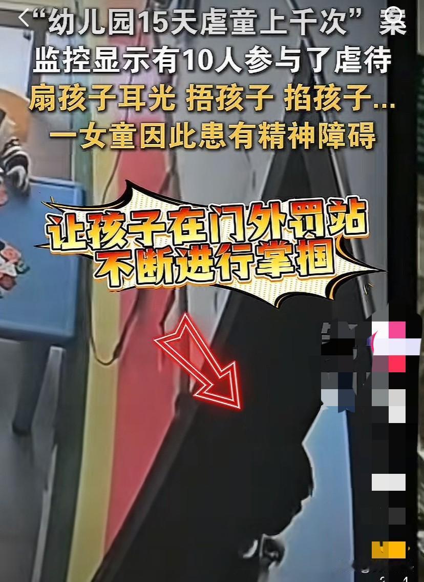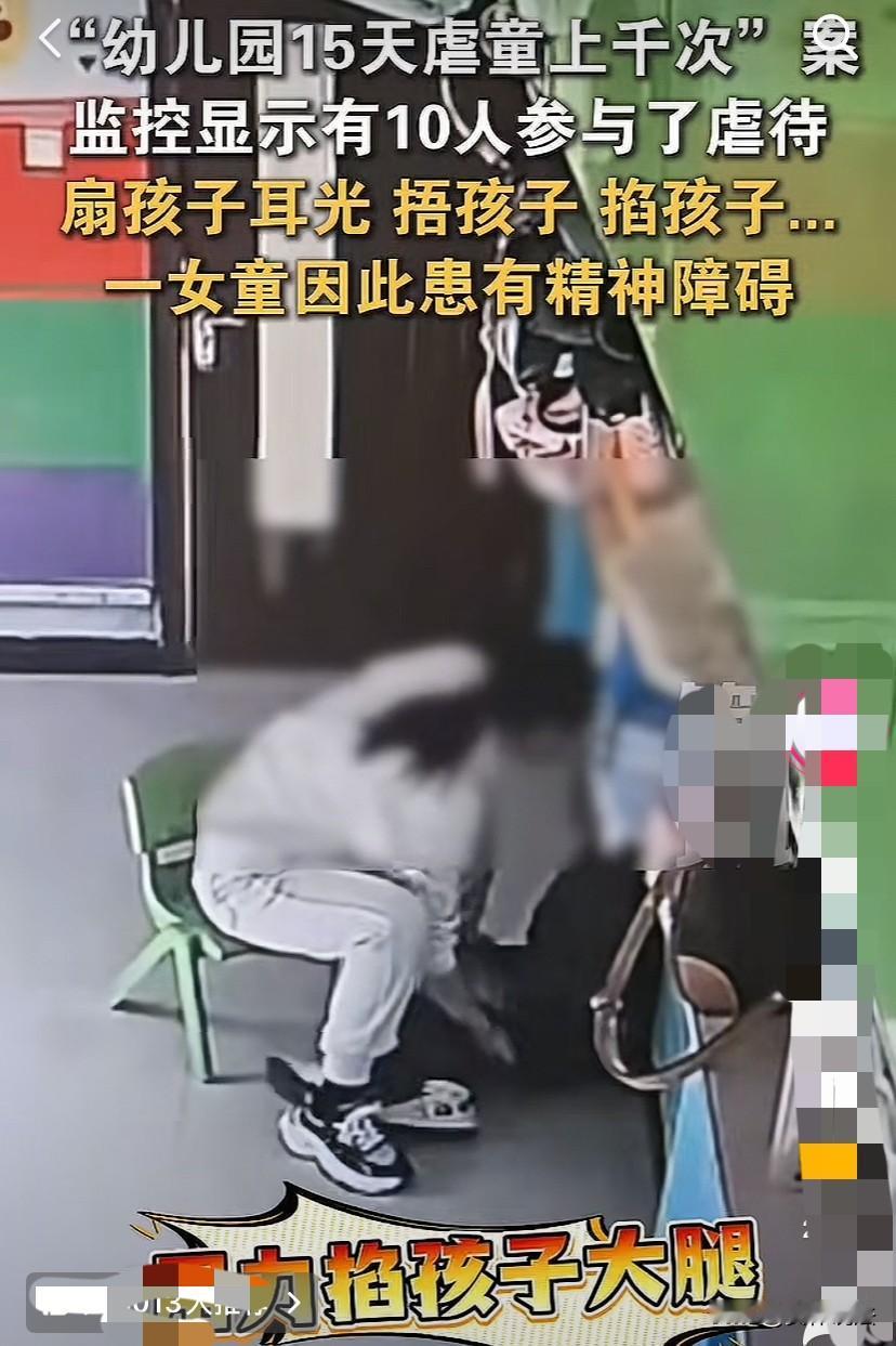 “令人发指!”辽宁盘锦,男子去年10月起就经常发现3岁女儿在幼儿园上学回家后,身上莫名其妙出现伤痕。 男子起初还以为是幼儿园老师说的“玩耍磕碰”,但是次数多了,在今年3月21日去幼儿园一查监控,竟然发现孩子被幼儿园的老师推到房间推头撞墙、扇嘴巴。 男子怒了,随后又往前查了15天的监控,结果竟然被打的不只是自己的孩子,还有别的孩子,打人的老师也不止一个,短短15天孩子们就被殴打上千次。 不仅如此,这些幼儿园的老师根本不把孩子当人看,还先把饭菜盛到自己碗里吃,然后再把自己吃剩的饭菜倒进锅里搅拌后给孩子们吃,让孩子吃“口水饭”! 男子无法理解这些幼儿园老师们,身为老师为何会做出这样的事情,一怒之下报警! 据悉事发后,男子的女儿还被医院确诊患上精神障碍。 而当地教育局关停涉事幼儿园,并要求涉事幼儿园将涉事老师开除,并对涉事幼儿园的法人作出永久禁止进入民办教育领域的处罚! 当地警方也对涉事幼儿园4名工作人员作出行政处罚。 应当注意的是,事情并没有到此为止! 《刑法》第260条之一规定:对未成年人、老年人、患病的人、残疾人等负有监护、看护职责的人虐待被监护、看护的人,情节恶劣的,处3年以下有期徒刑或者拘役。 单位犯前款罪的,对单位判处罚金,并对其直接负责的主管人员和其他直接责任人员,依照前款的规定处罚。 有第一款行为,同时构成其他犯罪的,依照处罚较重的规定定罪处罚。 这里的负有监护、看护职责的人主要是指对未成年人、老年人、患病的人、残疾人等负有监护、看护职责的学校(含幼儿园等育婴机构)、养老院、医院、福利院等单位负有监护、看护职责的人员以及直接负责的主管人员和其他直接责任人员。 这里的“虐待”,具体是指经常以打骂、冻饿、捆绑、强迫超体力劳动、限制自由、凌辱人格等各种方法,从肉体、精神上迫害、折磨、摧残被监护、看护的人的行为。 具体到本案,涉事幼儿园4名工作人员中的一名人员张某因多次以幼儿“淘气、不好管教”为由,对多名被看护幼儿采取恐吓、推搡、拍打、拖拽、怼打等方式进行虐待,情节恶劣,随后还被转为刑事拘留,而后被公诉,并于今日开庭审理! 事发后相关部门的一系列处理措施,也再次彰显了对虐童行为的零容忍态度。 还值得的一提的是,《民法典》第1199条规定,无民事行为能力人在幼儿园、学校或者其他教育机构学习、生活期间受到人身损害的,幼儿园、学校或者其他教育机构应当承担侵权责任;但是,能够证明尽到教育、管理职责的,不承担侵权责任。 受害幼儿因遭受老师的虐待,不仅遭受了身体伤害,更出现了精神行为异常等严重心理创伤,家长依法还可以向涉事幼儿园主张赔偿。 这事您怎么看?欢迎在评论区留言,与大家一起交流您的看法! ------ 关注@安律说法 案例中看人生百态,法律中寻破局之法!