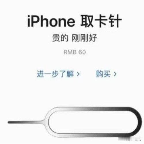 苹果60元取卡针炒到翻倍!传铂金回收300元,官方直接辟谣 最近这苹果取卡针可太火了!官网卖60块一根,网传是铂金材质,回收能赚300多,直接引发投机热潮,成都不少二手店都被问疯了,有的甚至卖断货。 二手平台更夸张,原本几十块的卡针价格直接翻倍,有的标价都飙到150了,卖家还打着“铂金材质、稀有珍贵”的旗号,忽悠不懂行的人下单。 结果苹果官方直接打脸,售后明确说从没宣称过取卡针是铂金做的,不知道这谣言从哪儿来的。说白了就是有人想趁机炒作,把普通配件吹成贵金属。 其实这卡针真实材质是“液态金属”,学名叫非晶合金,强度和硬度比普通金属好,但跟铂金八竿子打不着,也没有贵金属的回收价值。 回收行业的人也说了,压根没回收过什么“苹果铂金卡针”,这液态金属处理起来就跟普通金属废料一样,根本值不了几个钱,纯属炒作噱头。 更有意思的是,有卖家自己都承认知道不是铂金,但架不住有人信、有人买,还说“这就是市场”,简直把投机心理玩得明明白白。 想想也挺搞笑,60块买根取卡针已经够让人吐槽了,现在还想靠它“以小博大”赚差价,最后大概率是高价买了根普通金属针,纯纯交智商税。 苹果这配件定价本来就常引发争议,之前的145元抛光布、479元挂绳都被吐槽过,这次取卡针又被炒作,只能说大家对“苹果隐藏价值”的期待太高了。 提醒大伙别被这种谣言带偏,天上不会掉馅饼,所谓“低价买贵金属、高价回收”的说法,十有八九都是骗局,别想着投机赚钱最后亏了本金。 其实液态金属这材质确实有优势,广泛用在航空航天、医疗设备上,但用到取卡针上就是个普通配件,真没必要花大价钱跟风抢购。 炒作终会现原形,贪小便宜易吃亏!买东西还是得看实际价值,别被虚假传闻忽悠,花冤枉钱买个心理安慰,实在得不偿失。