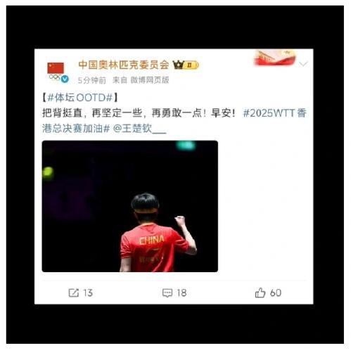 奥林匹克真的宠爱,好像是对自家孩子说的话,挺起腰杆,继续往前,何须畏惧! 勇敢的人,坚强的人,25岁已经赢了很多人,文案太符合了,满分的量身定制! 王楚钦已经足够坚定勇敢,一个月好十几场,赛事密集,一场比赛又一场比赛,成功率很不错,强韧的表现,唯愿楚钦健康完赛,主力中的佼佼者!