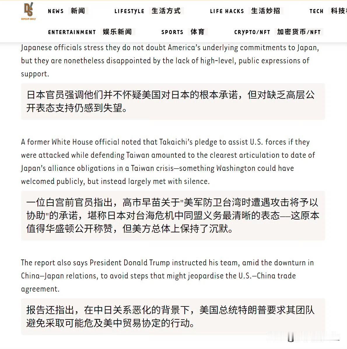 表示失望了,这才刚刚开始,怎么就表示失望了呢! 日媒报道,她们对美方公众支持寥寥表示失望,更有日方人员虽然不怀疑美方对日的承诺,但对缺乏高层公开表态支持感到失望。 100艘军舰才刚刚集结,辽宁舰也才刚刚北上,这么快就表示失望了,是不是有点太快了。 美方的沉默就是她们最大的失望,虽然有个协议在,但关键时刻支持不支持还要看态度。 如今老大的态度来了,你们剩下的只有失望了,最好还是别失望,看看100艘军舰到底要去哪!