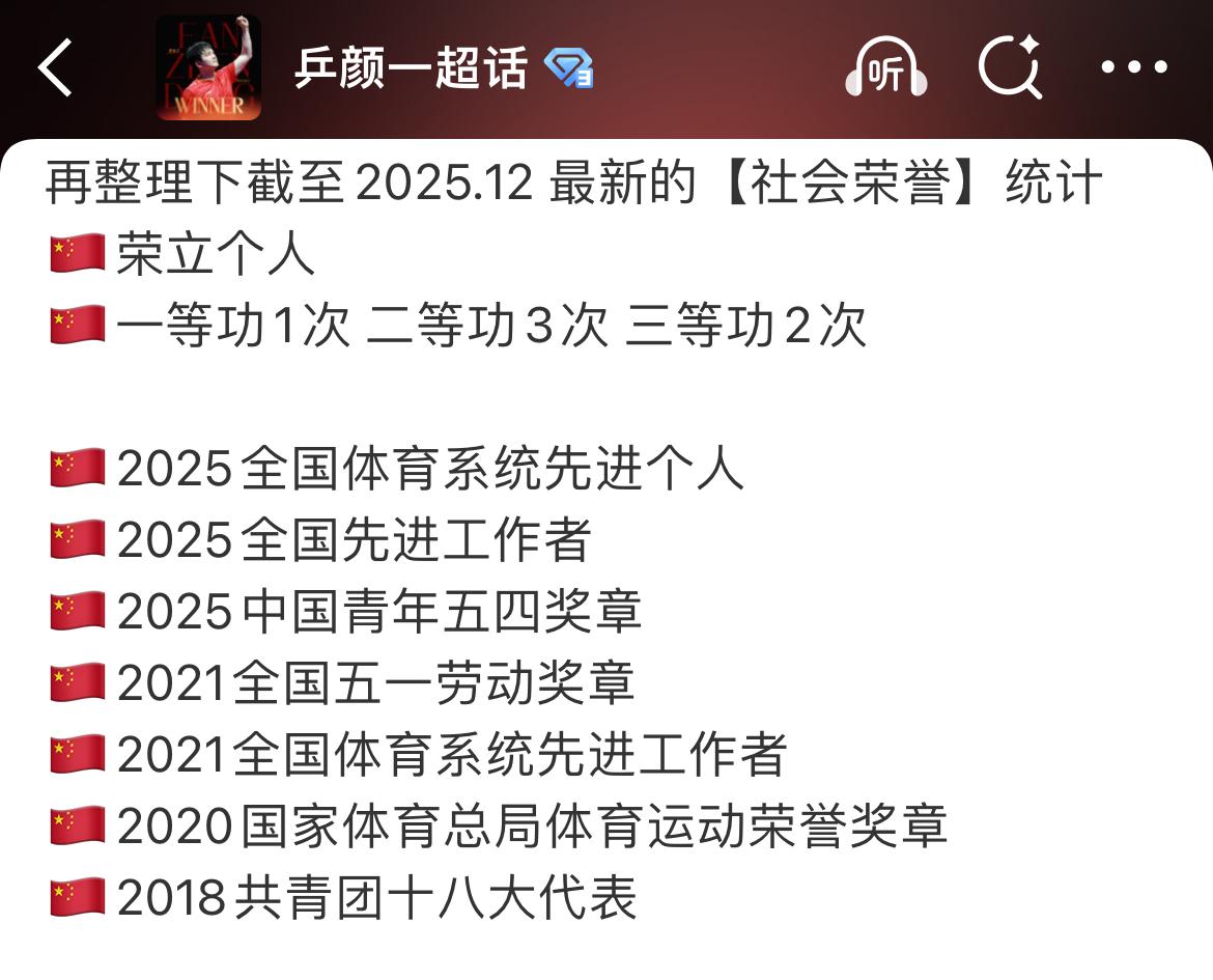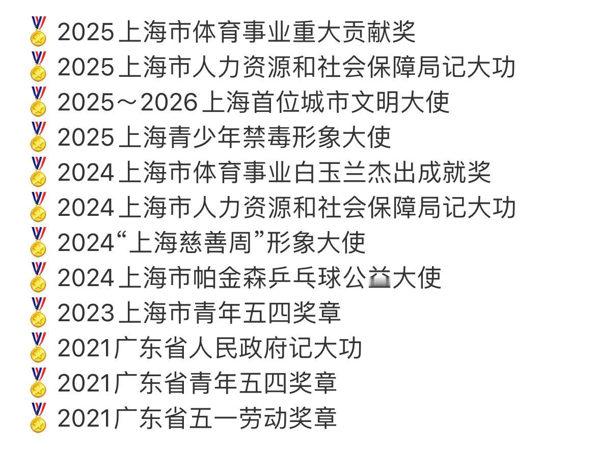 樊振东不愧是当代杰出的青年才俊! 看到网友发布关于小胖目前社会荣誉统计, 才意识到自己对他的认知还是太狭隘。 真没想到年纪轻轻的他, 竟然已有如此之多荣誉加身, 真是令我辈望尘莫及。 真的难以想象 究竟需要多大的天赋和努力, 才可以打造出如今的硕果累累。 到底是来自上帝怎么的偏爱, 才可以成就他如今优秀的让人难以匹敌。