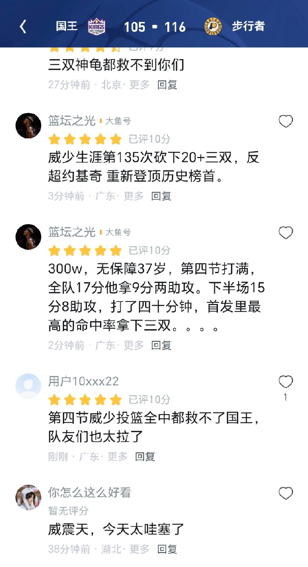UC直播间球迷说威少三双数据带不动队友,队友实在太拉。