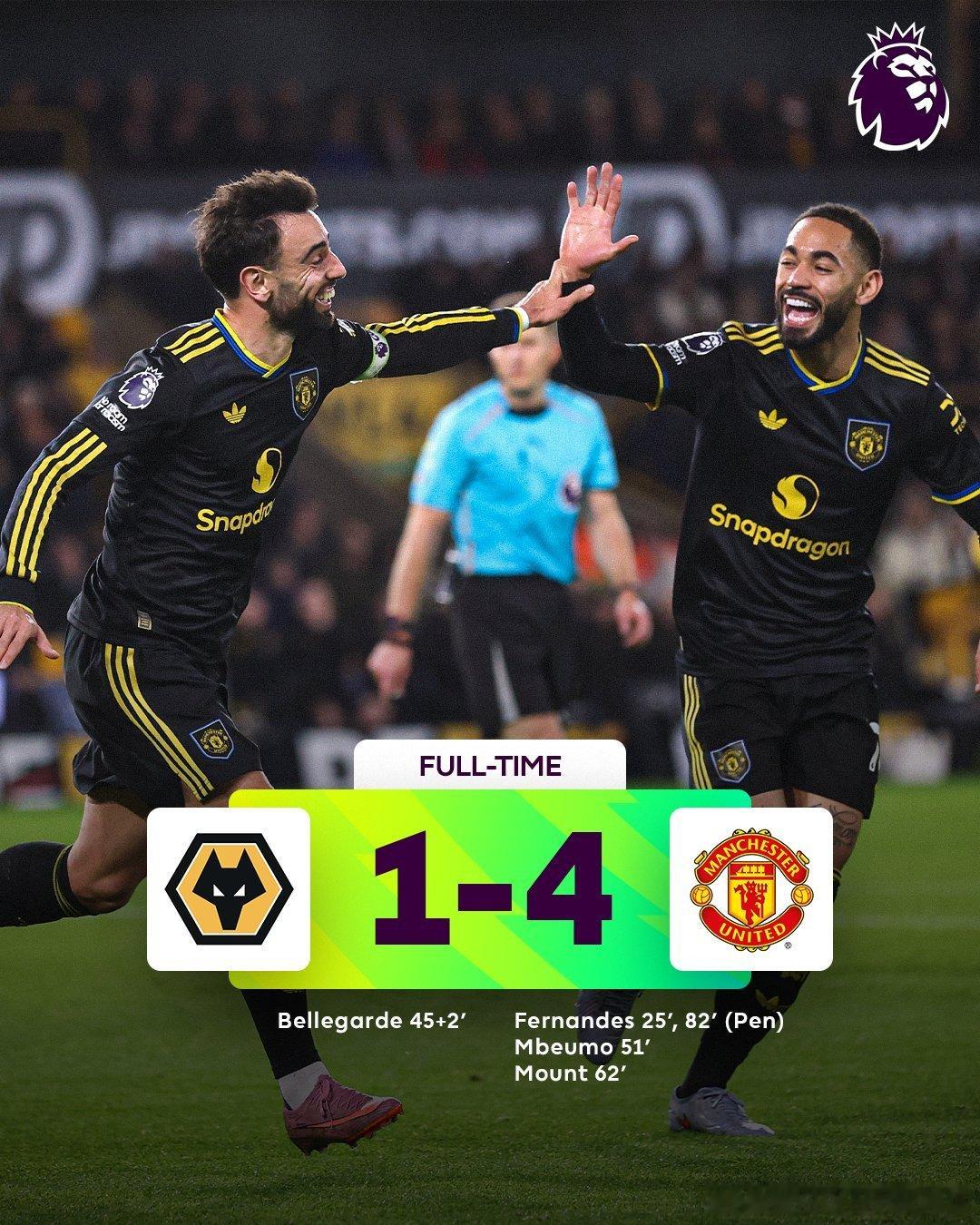曼联客场大胜狼队,积分榜来到第六!距离第四仅差1分!最近9场5胜3平1负,最近5个客场3胜2平保持不败!