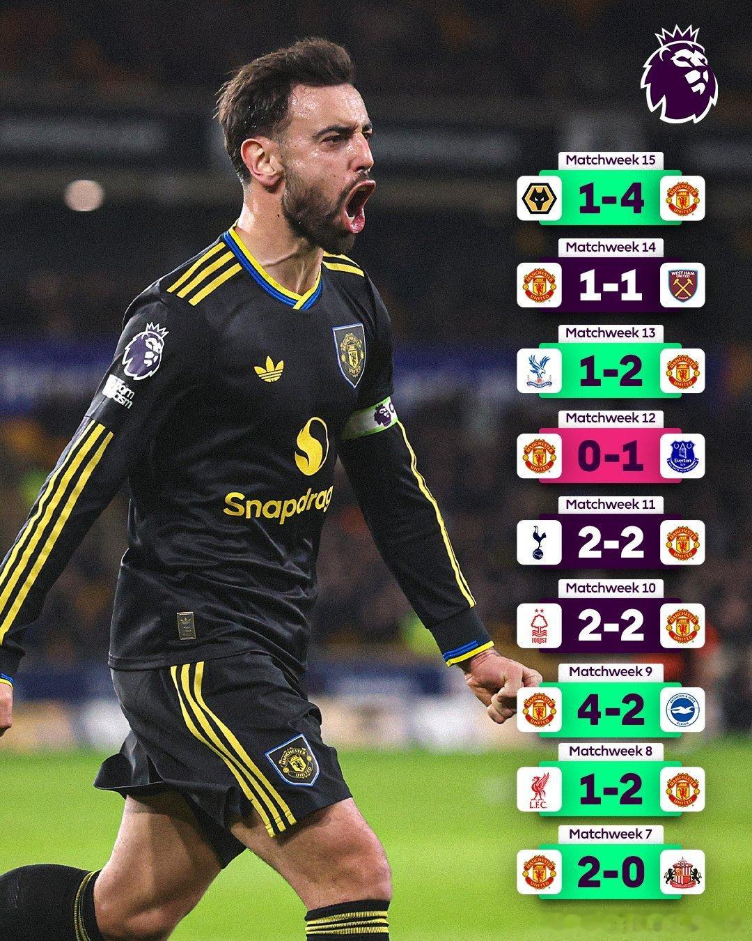 曼联客场大胜狼队,积分榜来到第六!距离第四仅差1分!最近9场5胜3平1负,最近5