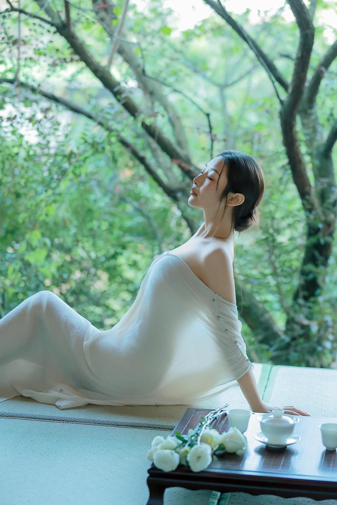 【翠微闲居】 晒图笔记大赛 (点击图片查看原图) 雾绡裁作月中衣,鬓挽春云向翠微。 素手拈来梨雪色,一枝斜倚绿窗扉。 风过竹梢轻曳袂,露凝花萼暗沾衣。 闲凭茶案听林籁,半是烟光半是诗。 国风摄影|思路分享: ①拍摄核心围绕“柔与静”展开:选侧逆光勾勒纱衣肌理,让晨雾漫入窗隙形成自然柔光罩,避免硬光破坏意境。 ②构图用三分法,人物居左倚窗,右留留白置竹枝/茶案,呼应“半是烟光”的诗境。 ③色彩上以素白、浅绿为主调,后期降低饱和度,用曲线提亮暗部,保留梨雪色的通透感。道具选细柄团扇、青瓷茶盏,弱化线条棱角,让画面更显雅致。