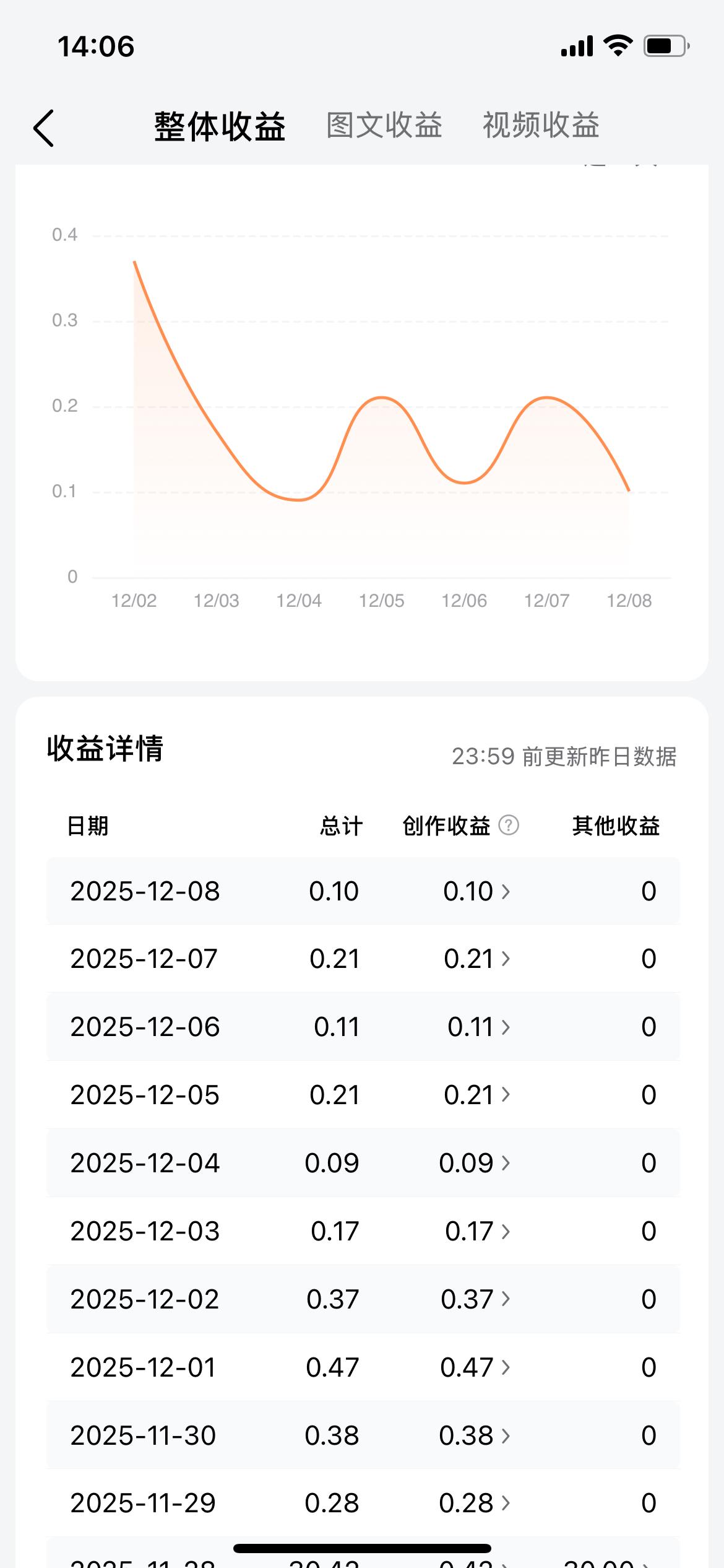 不佩服不行了, 这是最巅峰时刻, 我竟然最高收益4毛钱, 我打算今晚把家里的纸皮收一收, 整理一下,估计能卖2块钱, 你也写,我也写, 我怎么连个馒头都没有呢? 每天在垃圾桶旁边站1小时, 至少能捡10个瓶子, 太难了! 怎么输出都没有流量, 朋友们,你们的收益还可以吗?