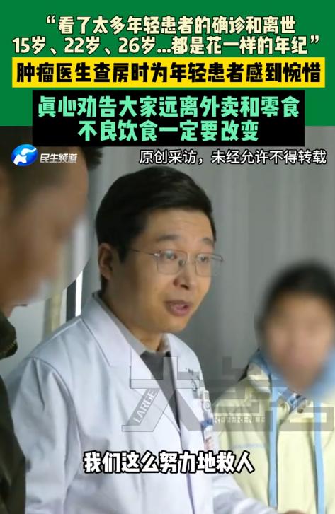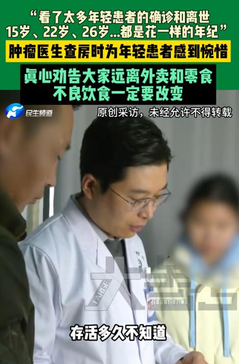 太可惜了!12月5日报道,河南一男孩15岁就得了肠癌晚期,原因却让医生唏嘘不已,肿瘤医生表示:“自己看了太多年轻患者的确诊和离世,15岁、22岁、26岁...都是花一样的年纪”,我们这么努力的救人,能救多少呢?真心劝告大家远离外卖和零食,不良饮食一定要改变。 本来该背着书包去上高中的年纪,小凡(化名)却躺在医院的病床上,浑身虚弱,医生告诉他和家人,说是肠癌到了晚期,肝上到处都是转移的肿瘤,能用的治疗办法已经非常有限了。 小凡的爸妈常年在外跑工地,心里一直觉得亏欠孩子,于是每个月往他卡里打不少钱,让他自己想吃什么就买什么。 没人照看的时候,他的饮食完全失了控:泡面、火腿肠、炸鸡成了每天的主食,喝水都是奶茶和汽水,零食像薯片辣条一天不离手。 放学后就把自己关在房里打游戏,经常玩到半夜,第二天睡到中午,三顿饭没个规律,蔬菜水果几乎从不碰。 三个月前他开始频繁腹泻,一天跑四五趟厕所,肚子隐隐作痛,他还以为是肚子闹脾气,随便吃点药就算了。妈妈从外地打电话也只是让他随便买点止泻药。 但症状越来越重,人肉眼可见地瘦下去,从接近 100 斤掉到八十多斤,父母急忙赶回来带他检查,先是在肝脏发现不明阴影,进一步做肠镜和影像学,才确认是肠癌晚期,而且已经扩散,最佳治疗时机彻底错过了。 负责治疗的肿瘤医生谈起他都忍不住叹气,说小凡这么多年吃的全是高度加工的垃圾食品,把肠子折腾坏了。 他见过太多年纪轻轻却得了肠癌的年轻人:十五岁的、二十出头的、二十六岁的,每一个都正是人生最好的时候,却被癌症缠住。 他无奈地说:“我们拼命想救,但这种被长期坏习惯拖垮的年轻孩子,能救回来的真的太少了,看着心疼。” 更揪心的是,他所在科室这个月就收了两个十五岁的肠癌患者,还有一名二十二岁的,想想都让人发冷。 不少人觉得肠癌是中老年人才会得的病,年轻人身体好,吃点外卖零食没什么,但是数据摆在那里,不会说假话。 《柳叶刀》的报告指出,过去十年里,三十岁以下人群的结直肠癌发病率涨了 142%,中国国家癌症中心公布的数字更扎心:三十到三十九岁的人群,占新发肠癌比例已经从十多年前的不到 4%涨到现在的 12.7%,甚至 90 后得肠癌去世的风险,是父辈那一代的两倍。 这些年轻人有一个惊人一致的习惯:离不开外卖、零食和含糖饮料,摄入太多油、多糖、多脂的食物,会不断刺激肠道黏膜,增加负担,而蔬菜水果这些富含纤维的食物吃得少,肠道蠕动就慢,有害物质在里面停留时间变长,对肠壁反复刺激,就容易出问题。 哈佛做了一个持续 24 年的研究,发现超加工食品吃得越多,肠癌前病变的风险越高,高了整整 45%,每多吃一份风险还会往上叠加。 世界卫生组织也早就把加工肉类列成一级致癌物,每天吃50克,肠癌风险就能增加18%。 除了吃的乱,很多年轻人还常年熬夜,现在手机、游戏、短视频太容易让人熬到凌晨两三点,肚子饿了还要来点夜宵。 这样长期打乱生物钟,免疫力和内分泌都会出问题,而肠道又是人体最大的免疫器官,一旦防御落下风,自然更容易出事。 小凡的妈妈现在最懊悔的,就是以前总觉得孩子喜欢吃就随他去,认为只要吃饱就算好,却不知道这些坏习惯对身体的伤害是日积月累、慢慢积攒的。 很多家长跟她一样,要么忙到顾不上孩子,要么觉得“偶尔吃一次没事”,却忘了健康是一条不归路,一旦出了问题,很难挽回。 更可惜的是,肠癌早期其实有不少明显信号,比如排便习惯突然改变、腹泻便秘反复交替、大便变细甚至带血、体重莫名下降、腹部反复不适。 但年轻人大多自信,觉得自己身体扛得住,或者把便血误以为是痔疮,耽误检查,等真正去医院时多半已经是中晚期。 如今医学指南也在更新,美国癌症协会已把常规肠癌筛查从45岁提前到35岁,有家族史的甚至建议25岁就开始,就是因为年轻患者越来越多。 外卖和零食确实省事又好吃,但不能为了省事把健康丢了,保护肠道其实不难:少叫几次外卖,偶尔自己做顿饭,把奶茶换成白开水,少吃一袋薯片,多吃一个苹果、一把青菜,膳食纤维就像肠道的“清洁工”,每天吃够蔬菜水果全谷物,可以减少肠道被刺激的时间。 规律作息也很重要,别长期熬夜,让身体有时间修复。 讲这个故事,不是想吓大家,而是想让所有人明白:癌症不挑年龄,它是从一个个坏习惯中慢慢长出来的。 健康从来不是小事,每一口吃进去的东西、每一次熬夜,都在影响你的身体。 别等到疾病敲门了,才后悔当初的放纵,从现在开始,吃得干净点,睡得规律点,是对自己和家人最实在、最负责任的做法。 因为再大的目标、再多的钱,都比不上一个健康的身体。 对此你怎么看? 信源:大参考