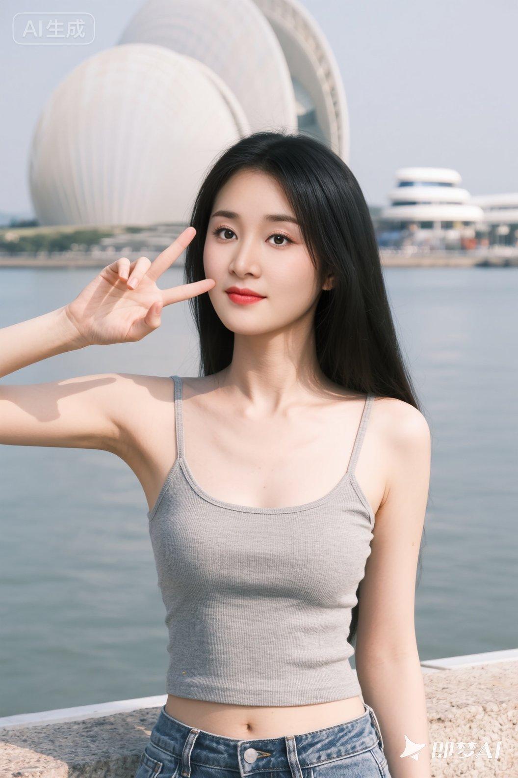 高挑高颜值美女,棕色头发,冷白皮肤,胸形饱满,唯美迷人,注视着镜头浅笑,弹力修身