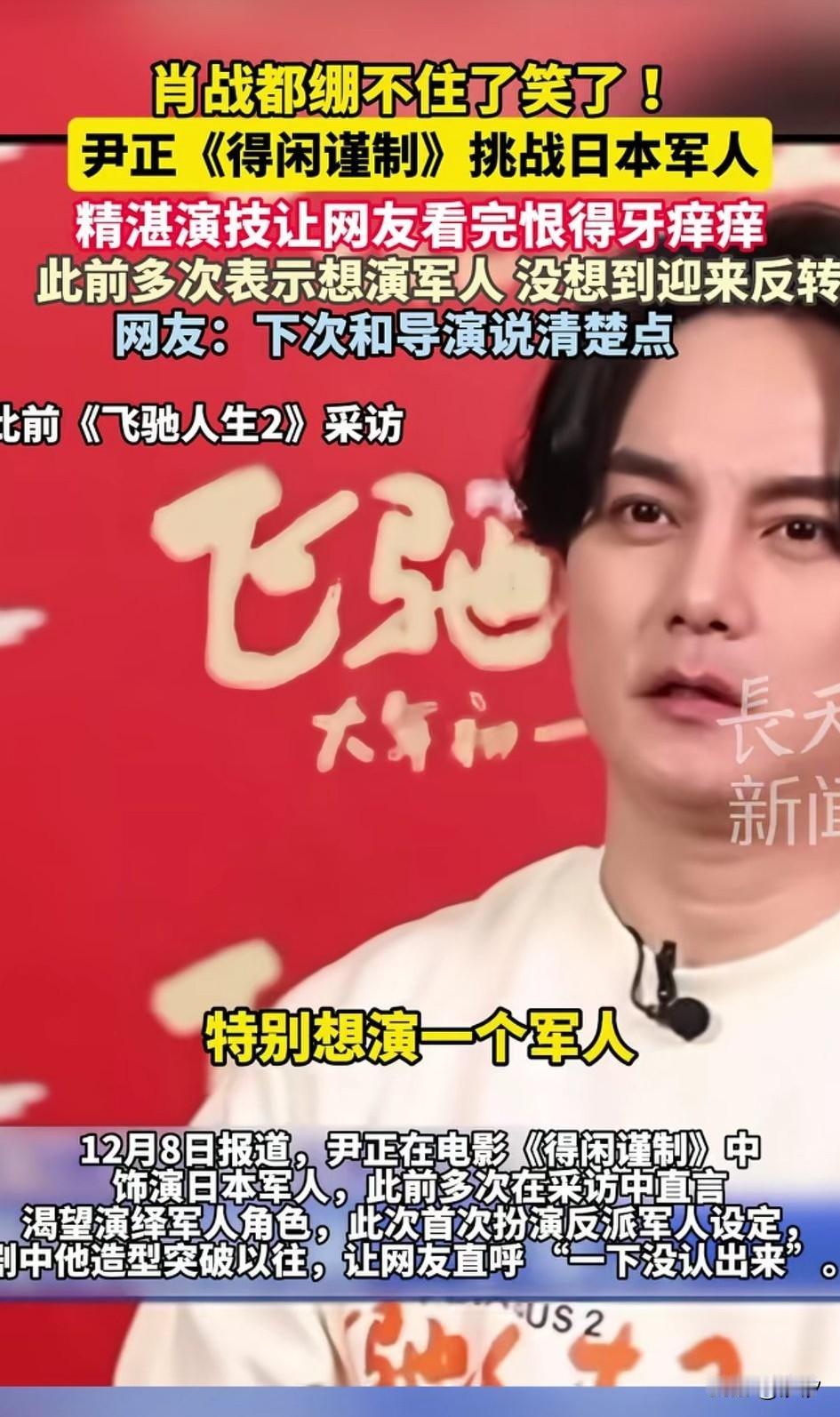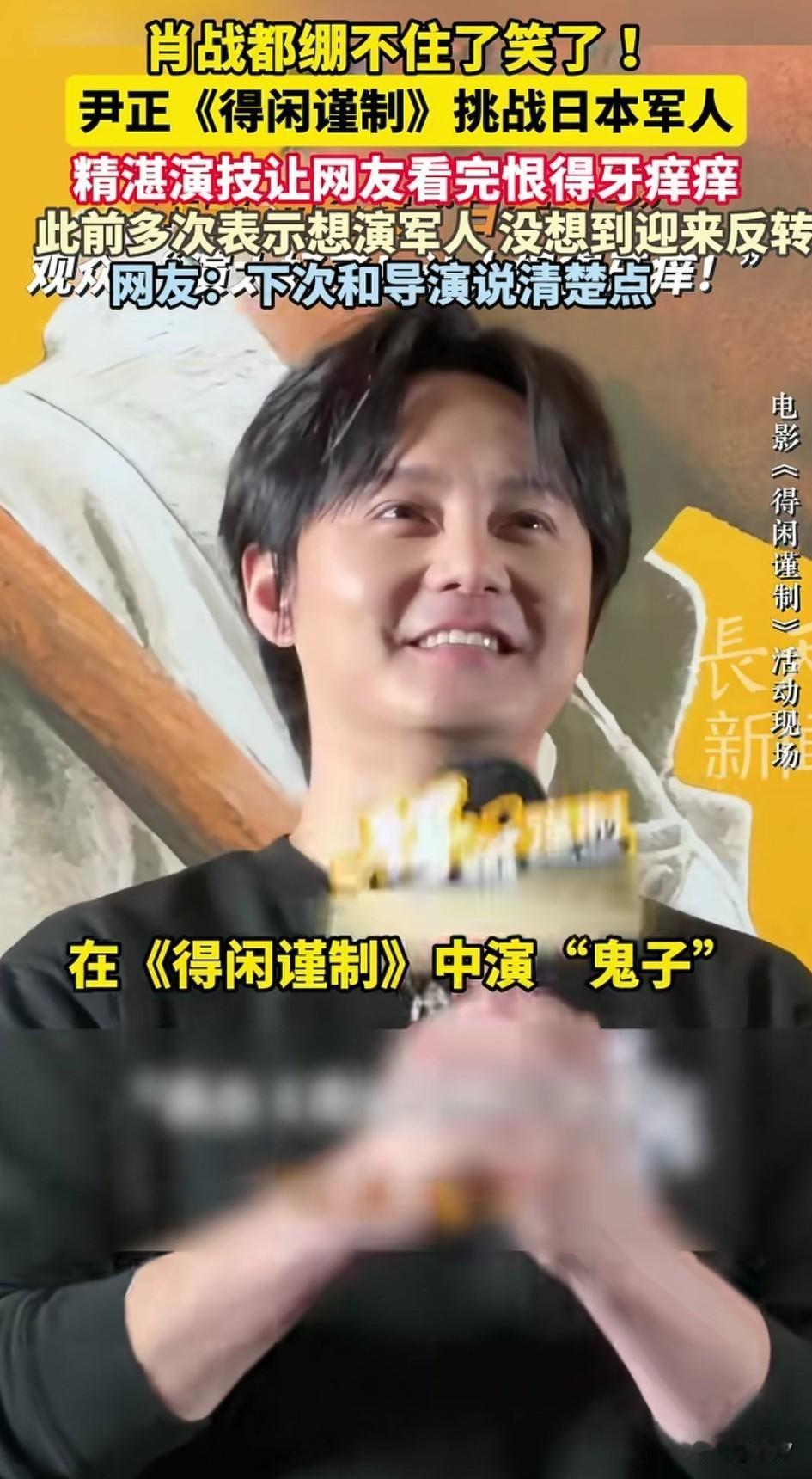 之前尹正在《飞驰人生》发布会, 表达了自己想养一个军人的愿望, 一直没有实现, 现在好了在《得闲槿制》中实现了愿望,导演居然让他演鬼子, 他本来是拒绝的, 导演的一句话打动了他, 真正的好演员是把角色深入人心, 这让尹正有了想挑战的欲望, 果不其然他演的鬼子, 眼神中带着凶狠, 不说还不知道是尹正, 彻底颠覆了他奶油小生的演技, 就在尹正介绍他的角色的时候, 旁边的肖战都忍不住笑了, 还别说尹正演喜剧演多了, 往那儿一站就很让人发笑, 不过剧中他演的鬼子, 还真是让人印象深刻, 大家对于尹正这次挑战鬼子怎么看? 肖战 肖战正能量艺人 尹正 尹正提车