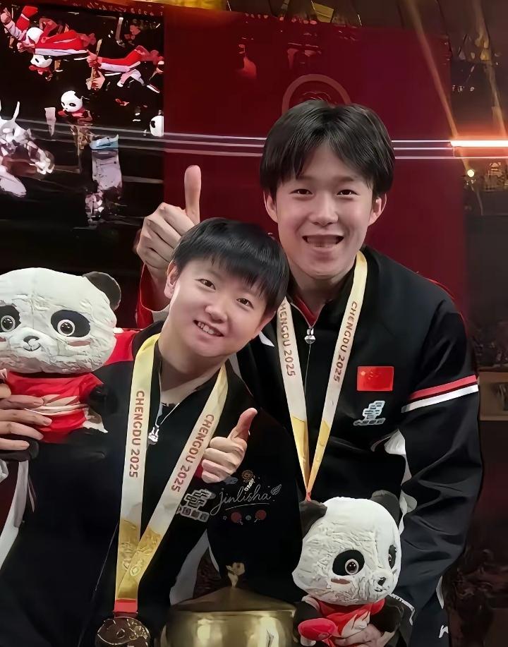 有幸刷到孙颖莎和王楚钦这张照片,看着两小只获奖后,笑容满面,开心竖起大拇指,一人手里拿着一个小熊猫玩偶,脖子上都挂着闪闪发光的金牌,特别让人喜欢。他们笑得眉眼弯弯,谁看了不迷糊!虽然有人说这是P的,P的也好看,不管是P的还是不是P的,我都喜欢多看两人,太开心了!