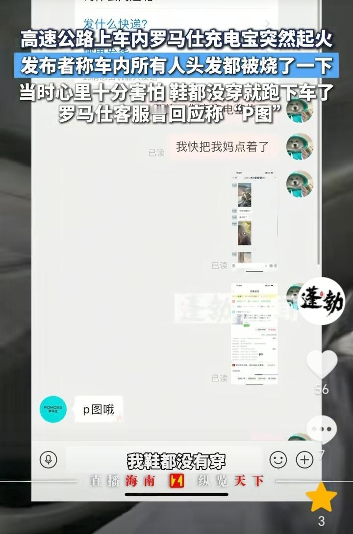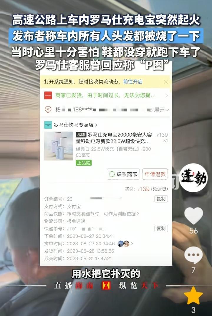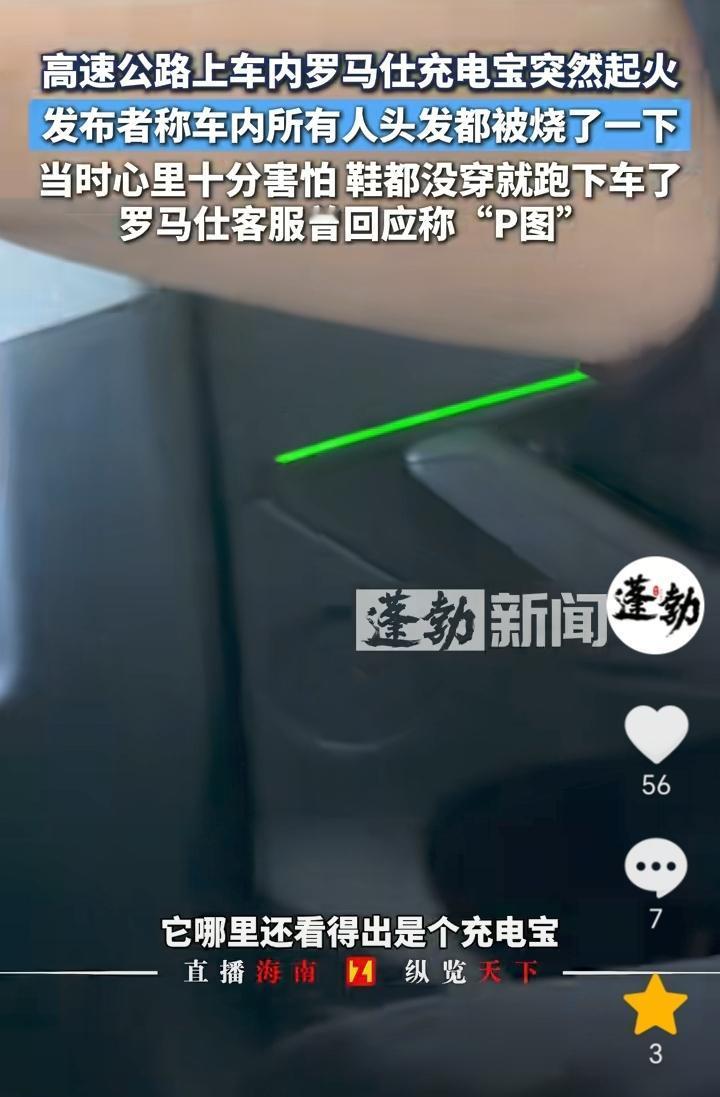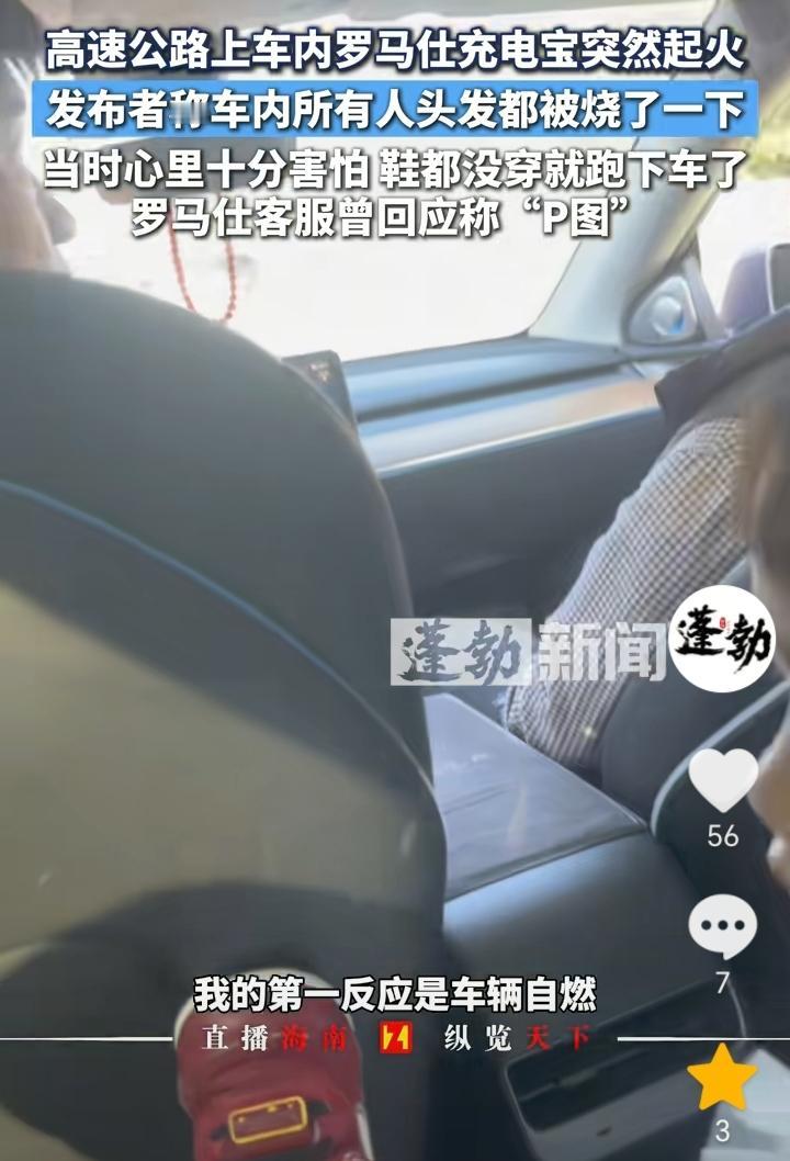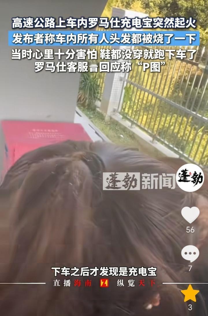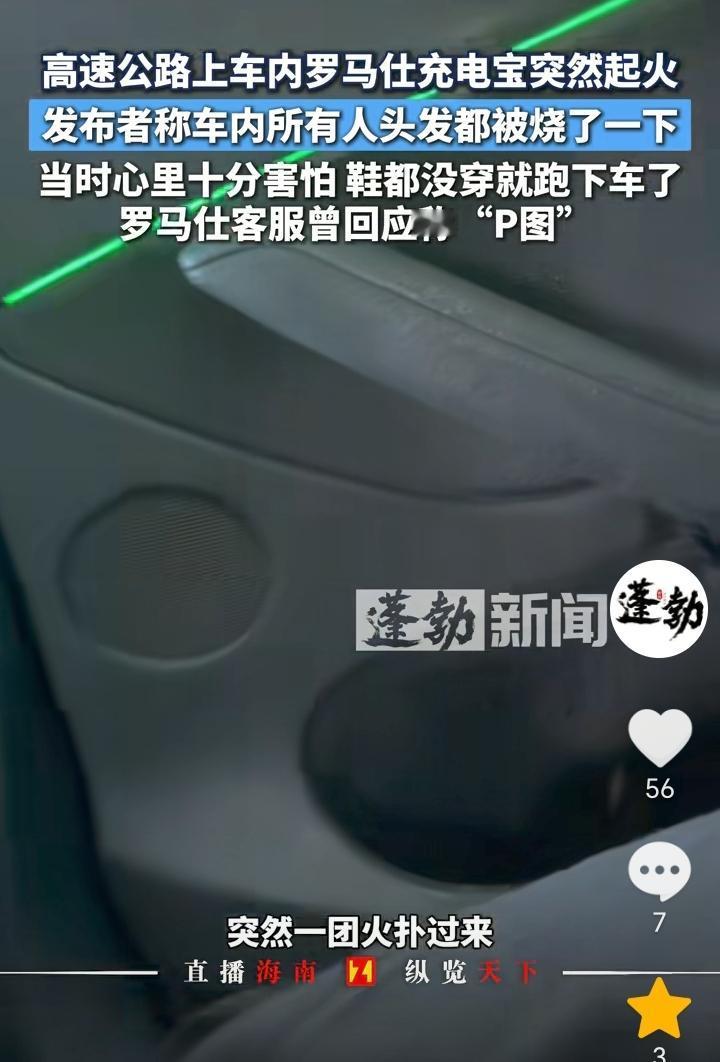 太吓人了!湖南,车辆行驶在高速上,突然放在车上的罗马仕充电宝爆炸了。女子表示,当时不知道是什么爆炸了,突然一团火扑过来,那一瞬间以为是车自燃了,下车后才发现是充电宝,幸好没有人受伤,只是所有人头发都被烧了一下,衣服烧了一点,车辆停在应急车道上,下车后用水才把火扑灭,现在根本就看不出来是一个充电宝了,直接烧成了一个黑炭,对此罗马仕客服质疑这是P图,后续理赔目前在走保险,拼多多平台也有介入。 车辆高速上行驶,充电宝突然爆炸起火,这也太吓人了,幸好没有人受伤,只是头发被烧了下。 平白无故爆炸,充电宝质量肯定存在有问题,厂家应该重视起来查出原因给一个说法,不然这么危险的产品肯定也是没有人敢买了。 充电宝还是尽量不要放在车里,万一车辆行驶中充电宝发生爆炸,很容易出现事故。